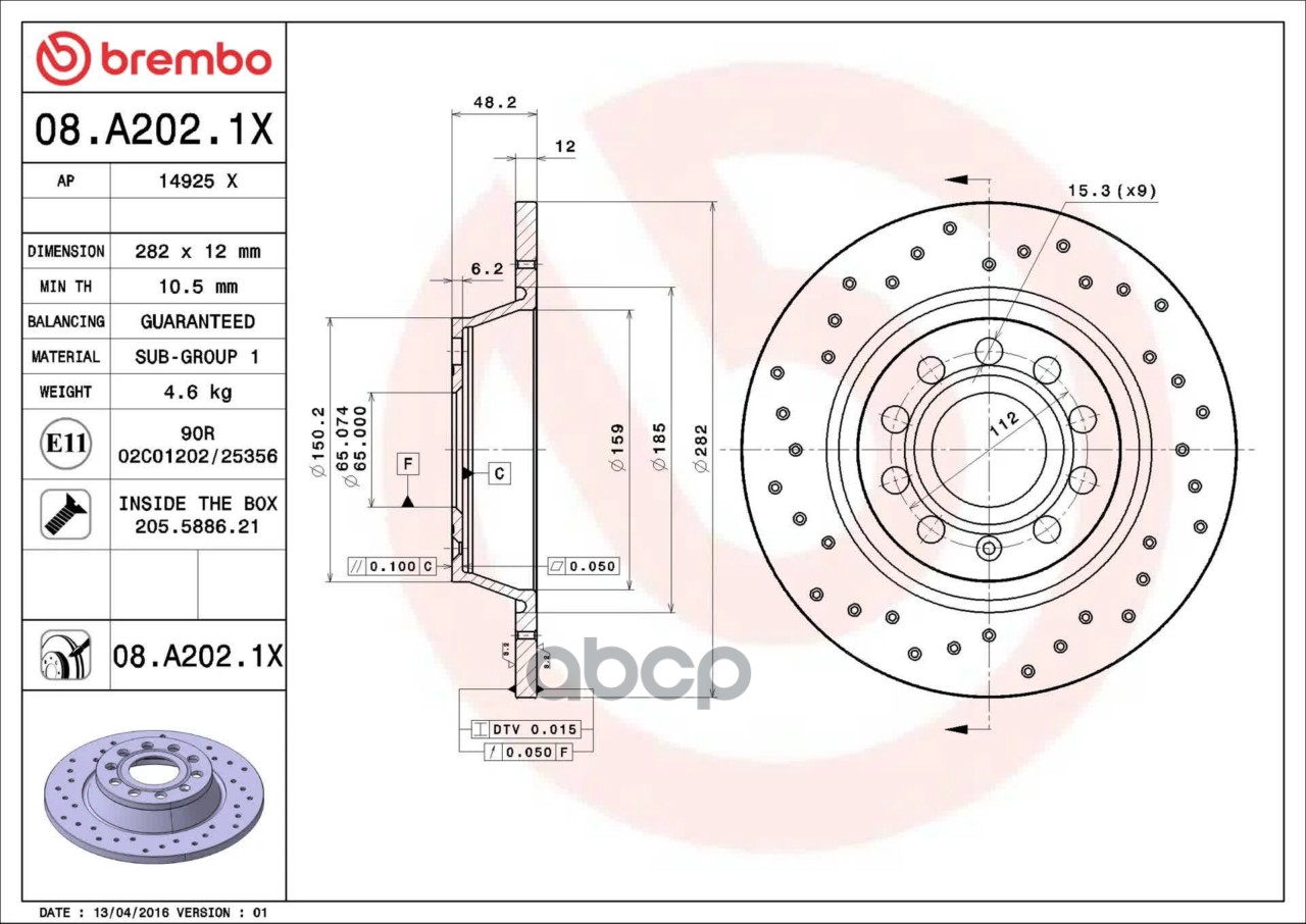 Купить запчасть 08A2021X Диск тормозной задний перфорированный с доставкой по России.