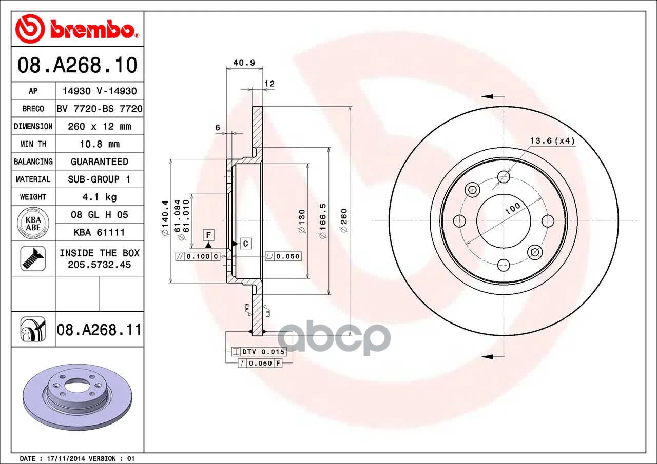 Купить запчасть 08A26811 Тормозной диск с доставкой по России.
