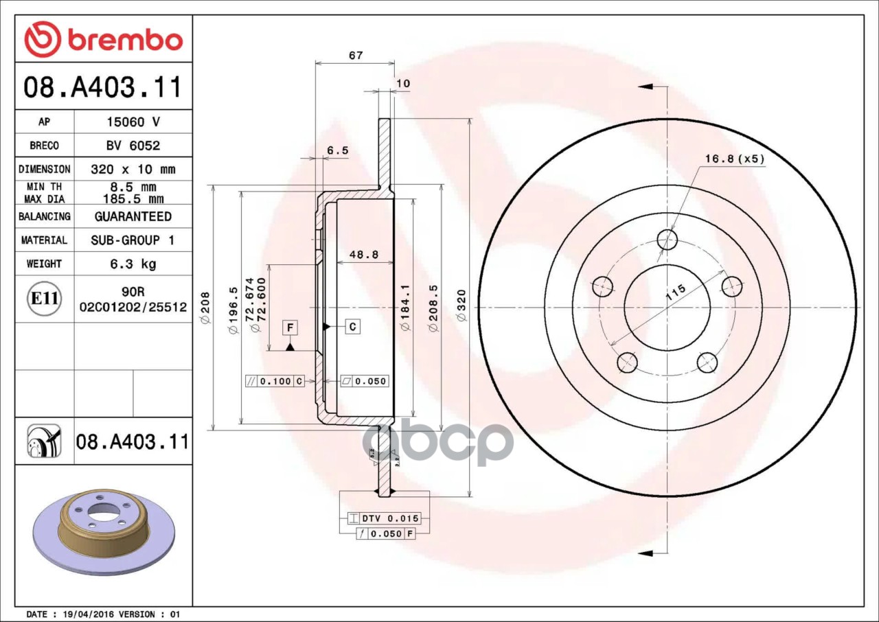 Купить запчасть 08A40311 диск тормозной с покрытием с доставкой по России.