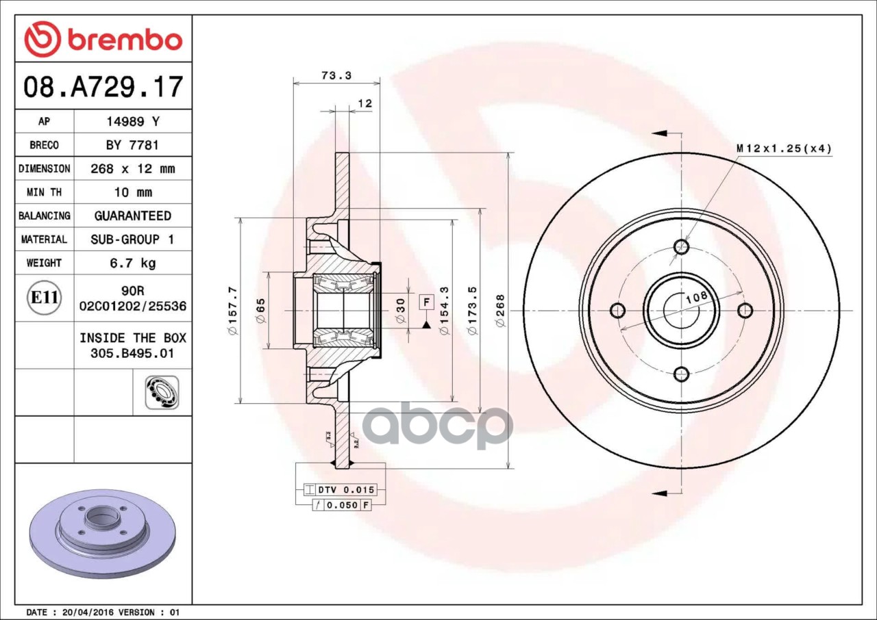 Купить запчасть 08A72917 Тормозной диск задний с доставкой по России.