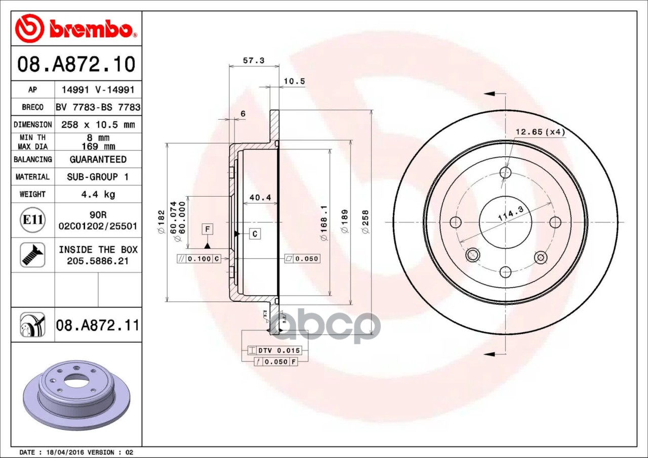 Купить запчасть 08A87211 ТОРМ.ДИСК ЗАД.258 X 10,5 4 ОТВ.MIN3 с доставкой по России.