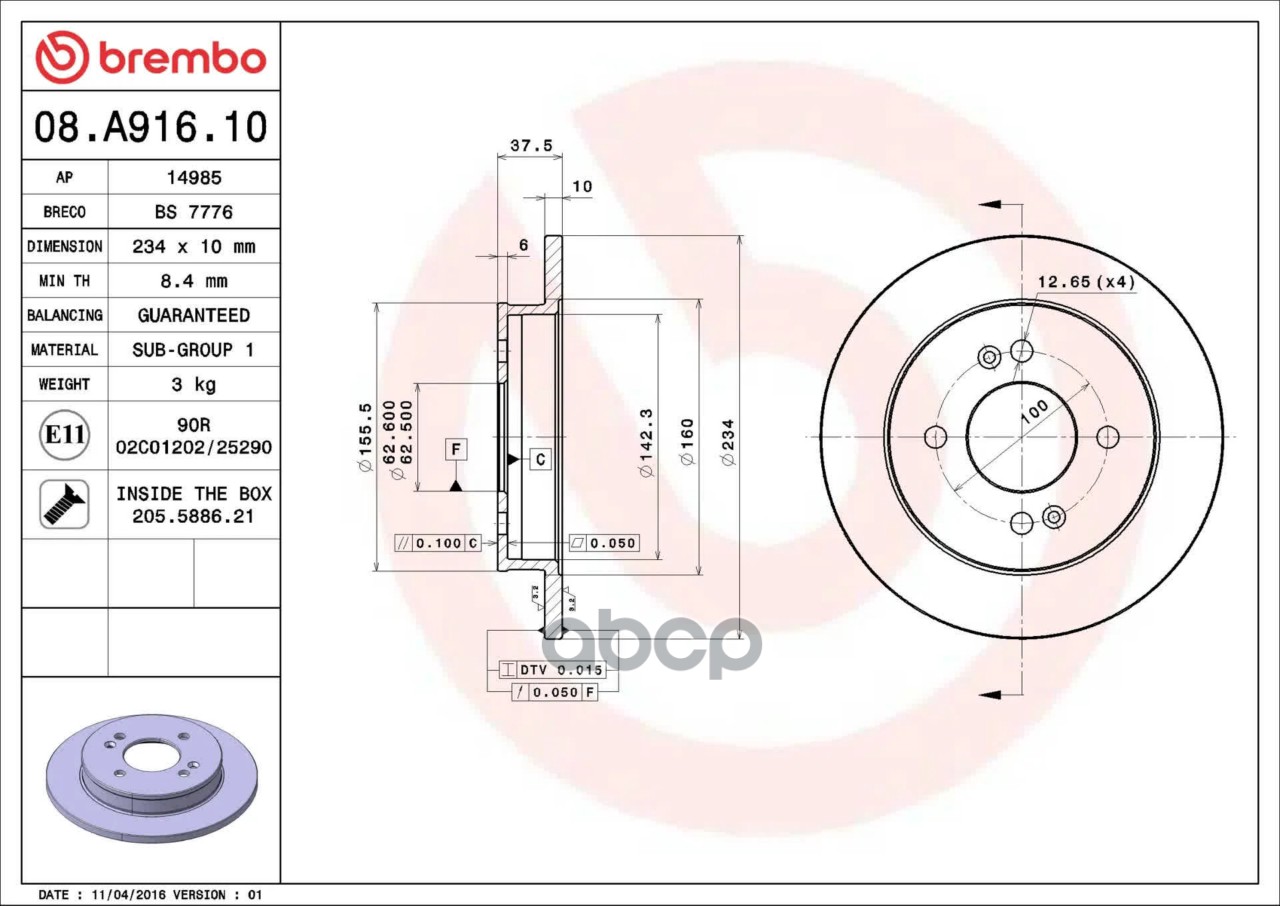 Купить запчасть 08A91610 Тормозной диск с доставкой по России.