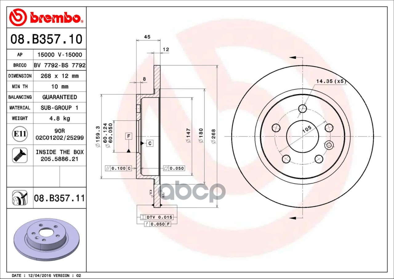 Купить запчасть 08B35711 ТОРМ.ДИСК ЗАД.268X12 5 ОТВ.MIN2 с доставкой по России.