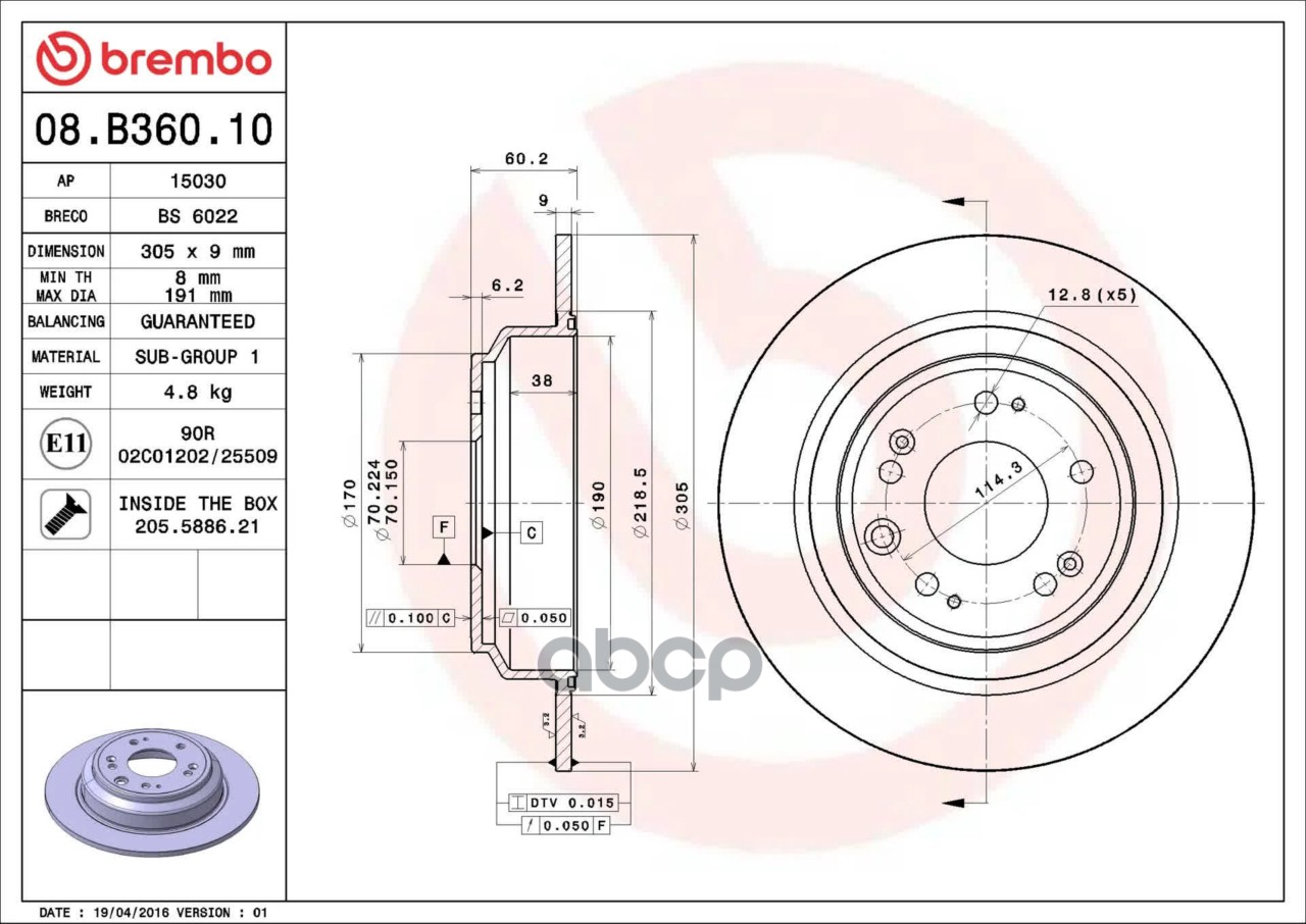 Наименование: ДИСК ТОРМОЗНОЙ 08.B360.10