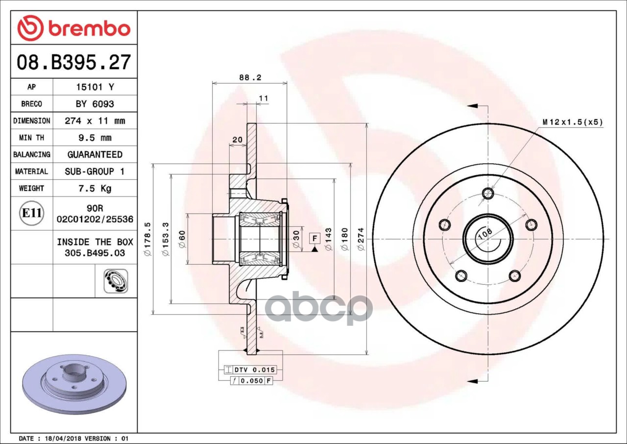 Купить запчасть 08B39527 Диск торм. зад.[274x11] 5 отв. RENAULT Kangoo 1.2-1.6 08->, MERCEDES Citan 12-> с доставкой по России.