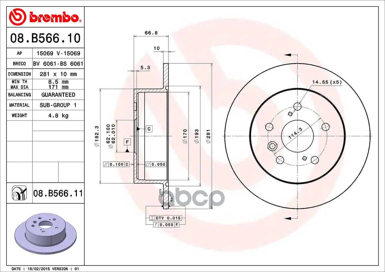 Купить запчасть 08B56611 Диск тормозной задний Toyota Camry, Lexus ES 2.4/3.5 06> (281x10x5) (з с доставкой по России.