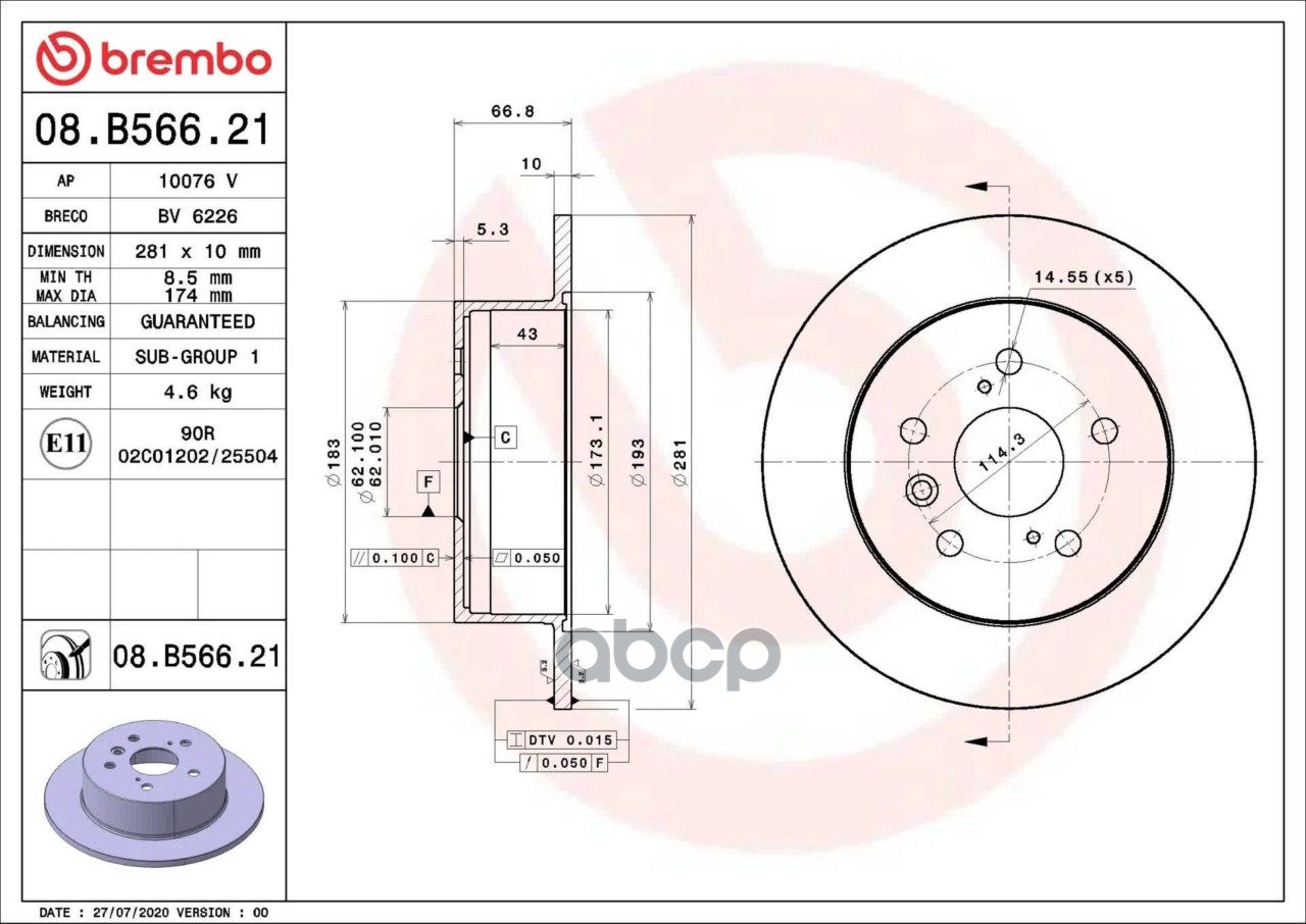 Купить запчасть 08B56621 BRAKE ROTOR с доставкой по России.
