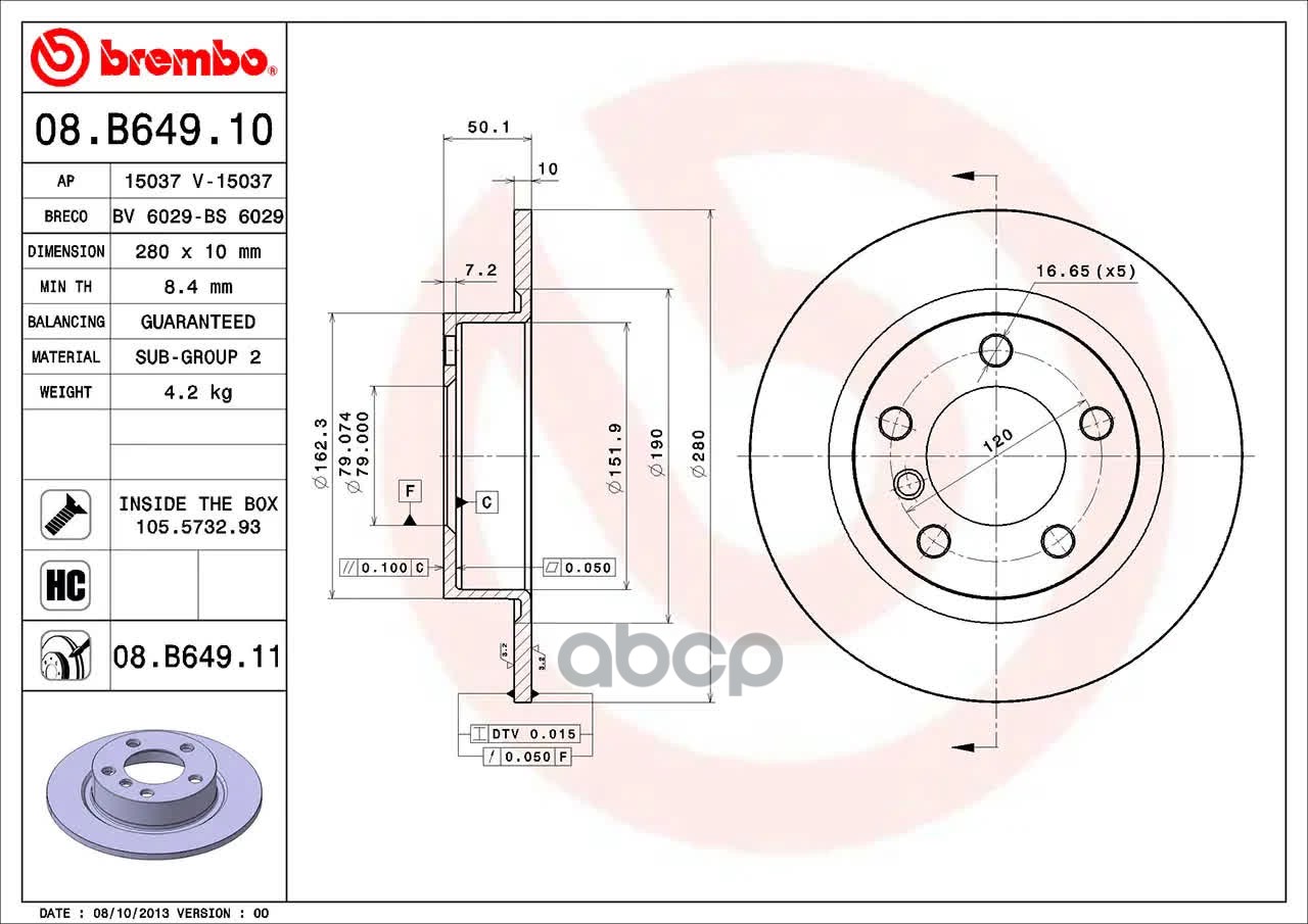 Наименование: ДИСК ТОРМОЗНОЙ BREMBO PAINTED DISC 08.B649.11