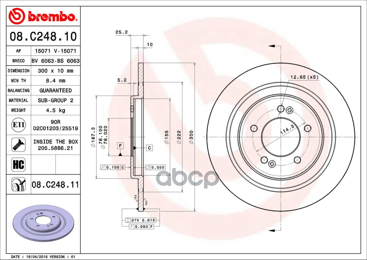 Диск тормозной задний 08.C248.11