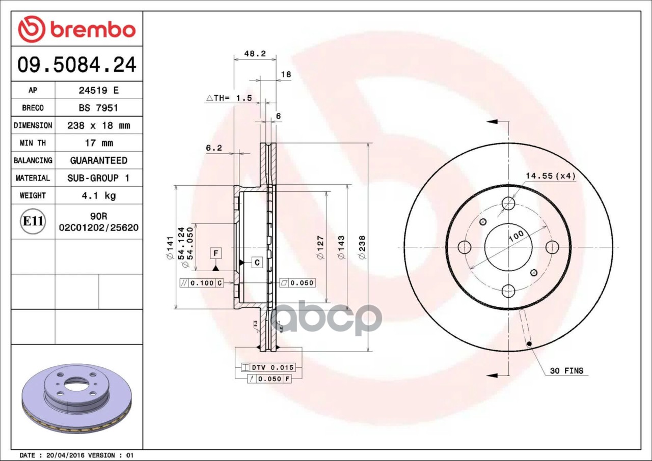 Купить запчасть 09508424 Диск торм. пер.вент.[238x18] 4 отв. TOYOTA Corolla 1,3-1,8 87-95 F с доставкой по России.