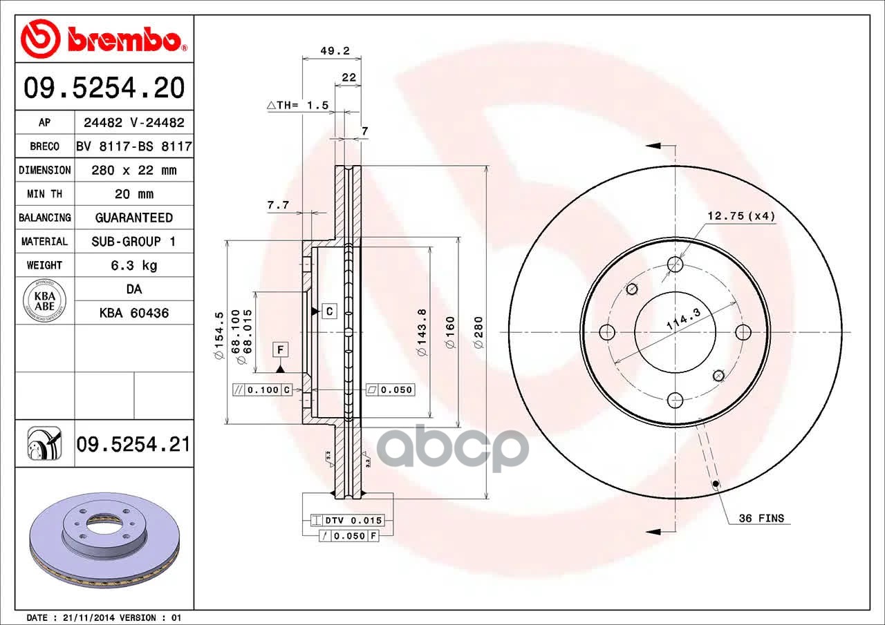 Купить запчасть 09525421 Диск торм. пер.[280x22] 4 отв. NISSAN 200SX/ALMERA/PRIMERA 1.5-2.2 07.88-> с доставкой по России.
