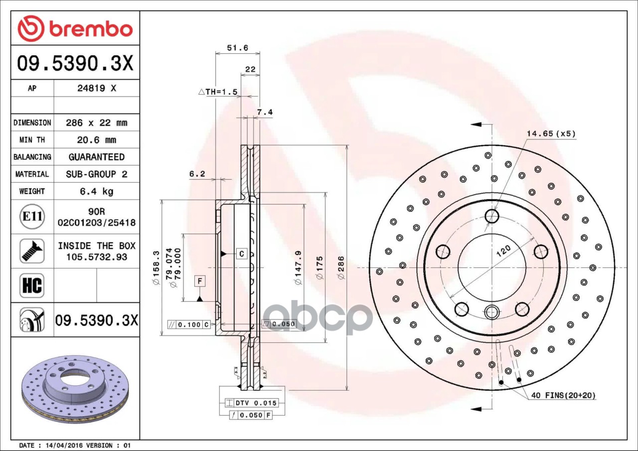 Наименование: Диск тормозной 09.5390.3X_диск тормозной передний! перфорированный Xtra BMW E36E46 1.8-2.5D M