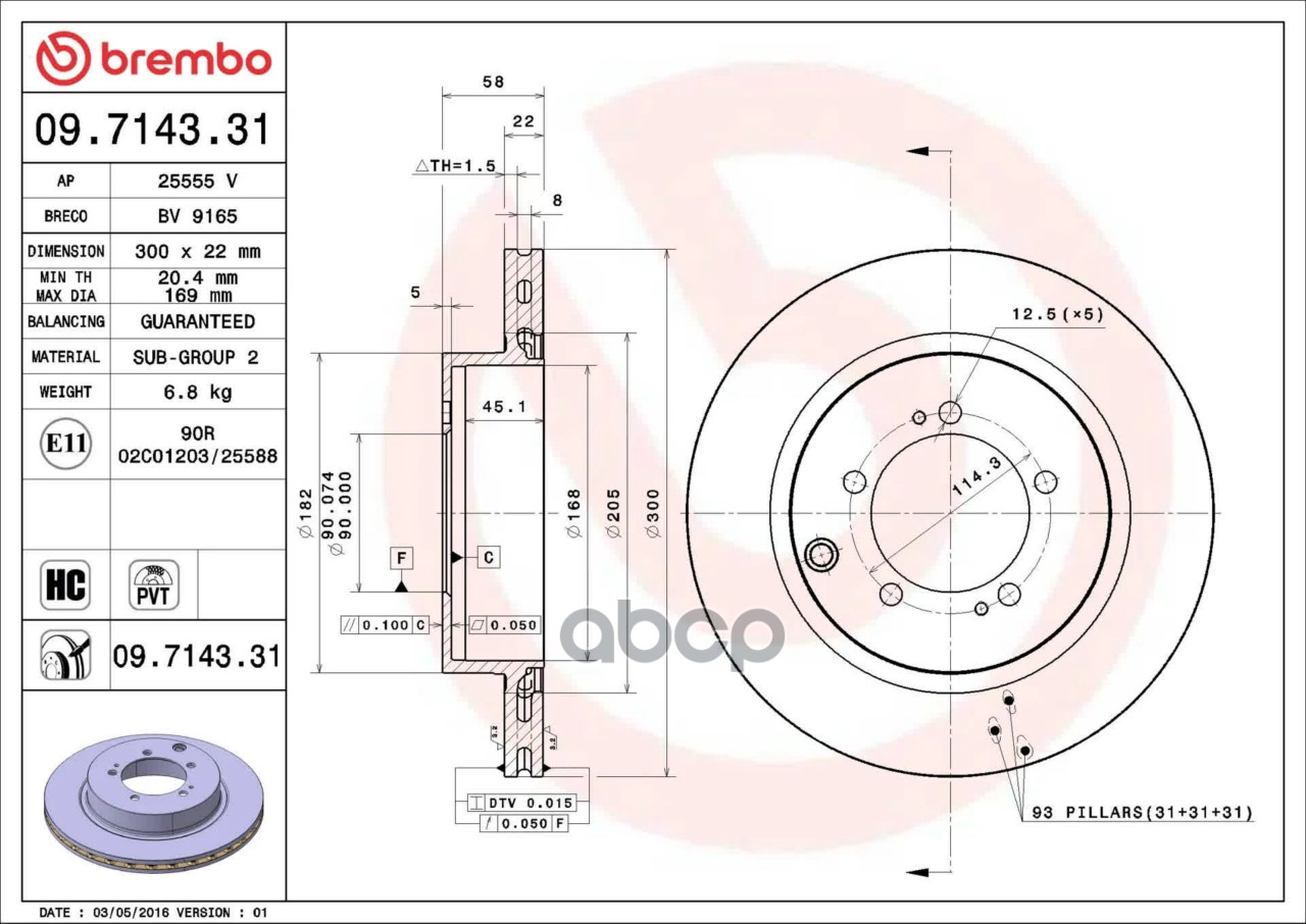 Купить запчасть 09714331 Диск торм. зад. вент. 300x22 5 отв. с доставкой по России.