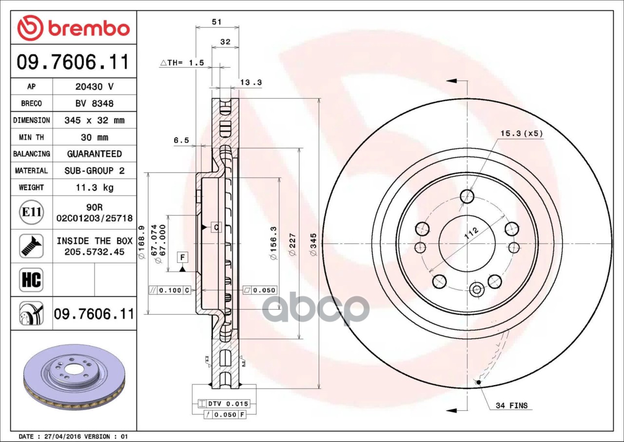 Купить запчасть 09760611 Диск торм. пер.вент.[345x32] 5 отв. MERCEDES ML 350/430 98> с доставкой по России.