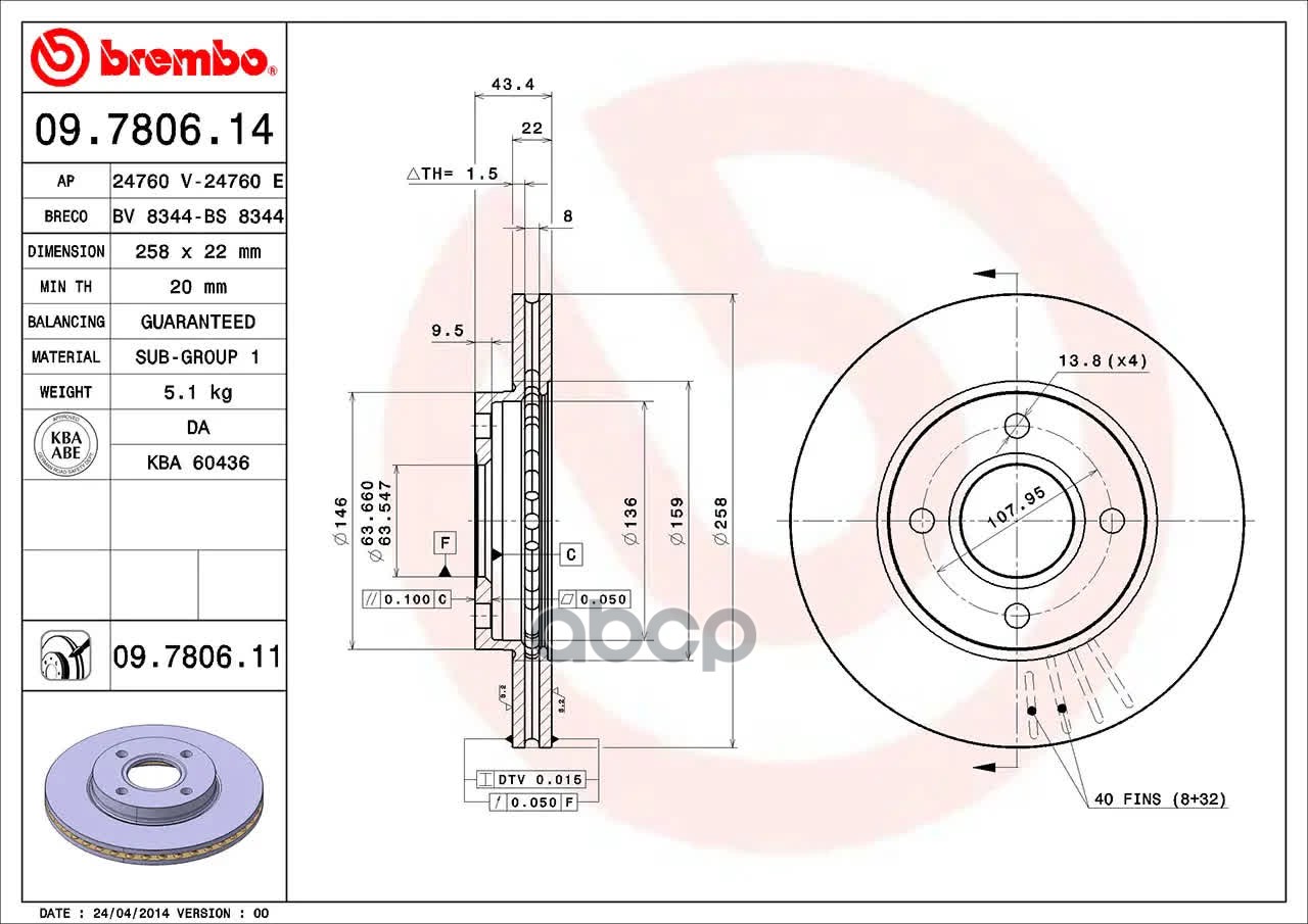 Купить запчасть 09780611 Диск торм. пер.вент.[258x22] 4 отв. FORD Fiesta IV 1,0-1,6-16v/1,8D 95-01/02 ,Focus 1,4-2,0-16c/1,8D 10/98-> ,MAZDA 121 III 3/96-> с доставкой по России.