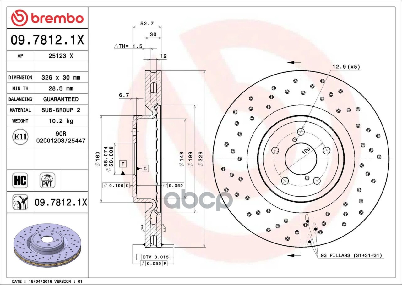 Купить запчасть 0978121X Диск тормозной передний (перф.) SUBARU IMPREZA Estate (GG) 10/00> / SUBARU IMPRE с доставкой по России.