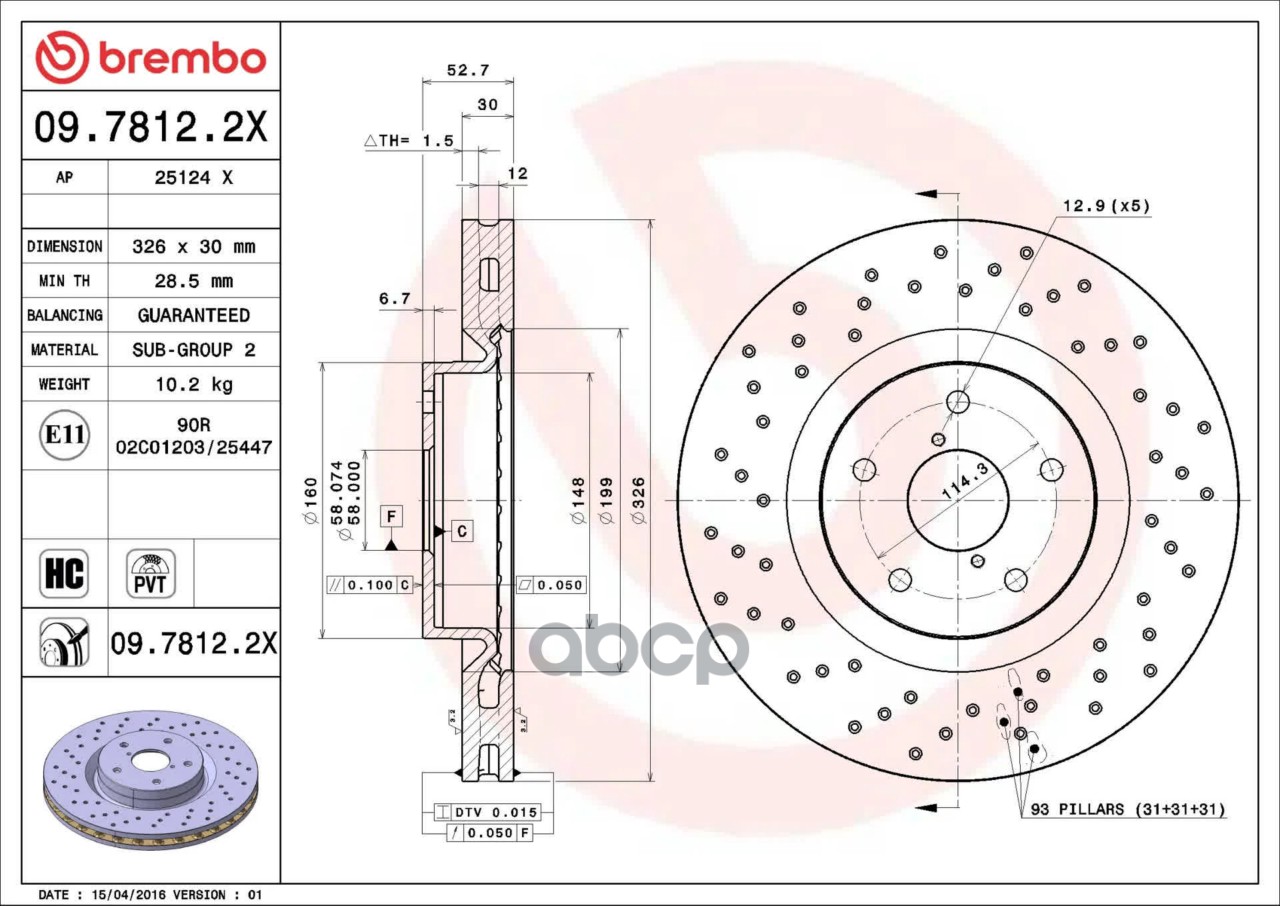 Купить запчасть 0978122X Диск тормозной передний перфорированный с доставкой по России.
