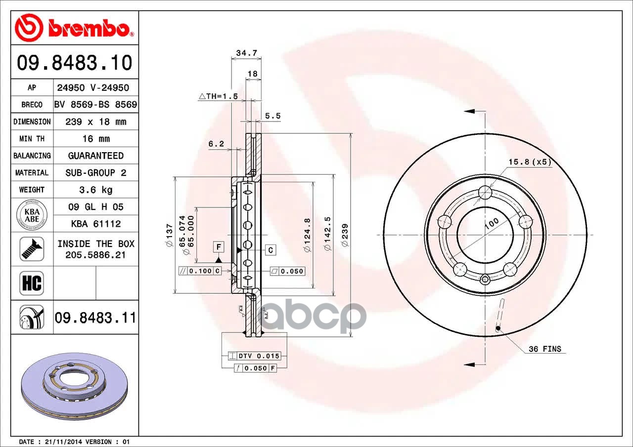 Купить запчасть 09848311 Диск торм. пер.вент.[239x18] 5 отв. SKODA Fabia 12/99->/ Praktik 03/07->.VW Fox 04/05/ Polo 10/01-> с доставкой по России.