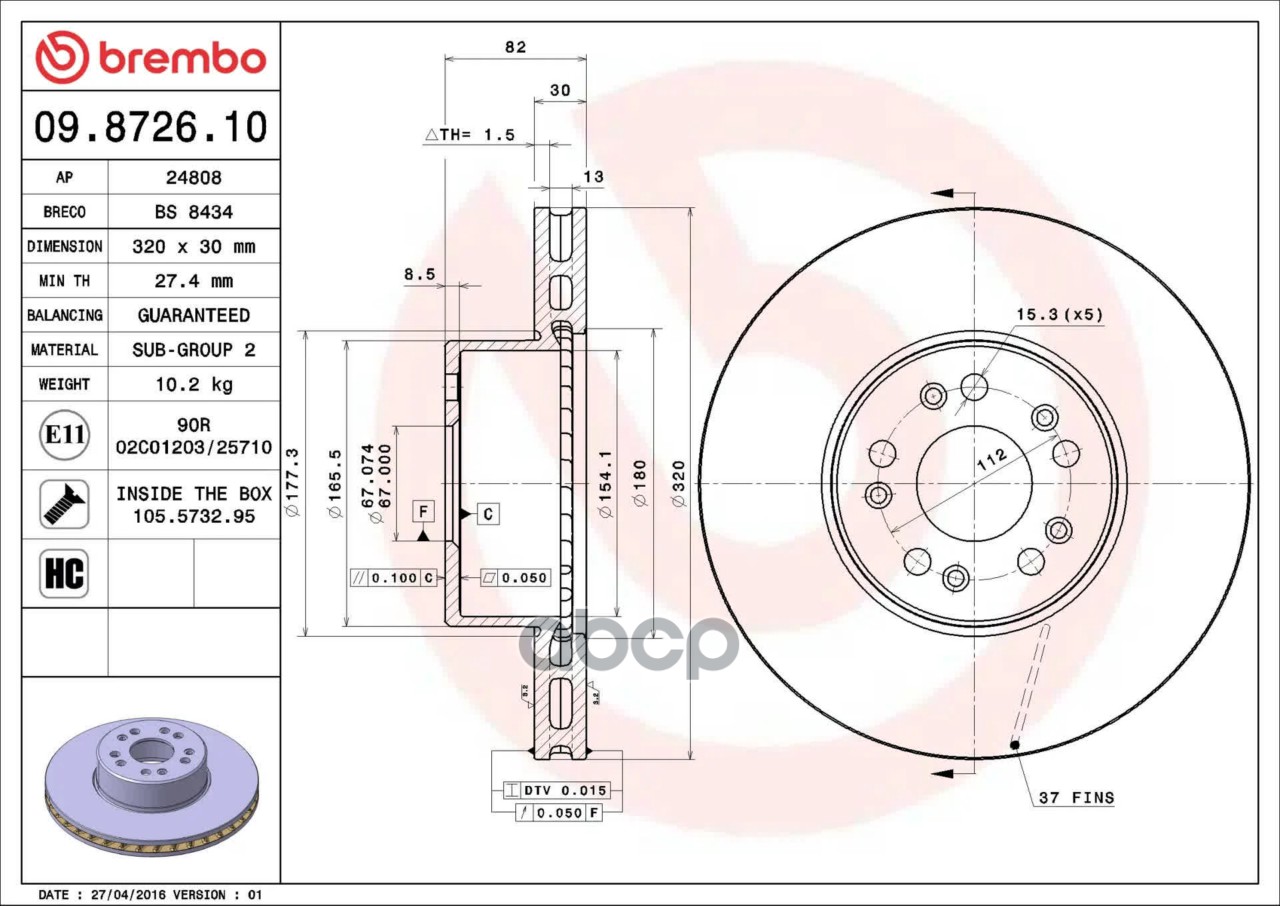 Диск торм. пер.вент.[320x30] 5 отв. MERCEDES W140 2,8-6,0 91-99