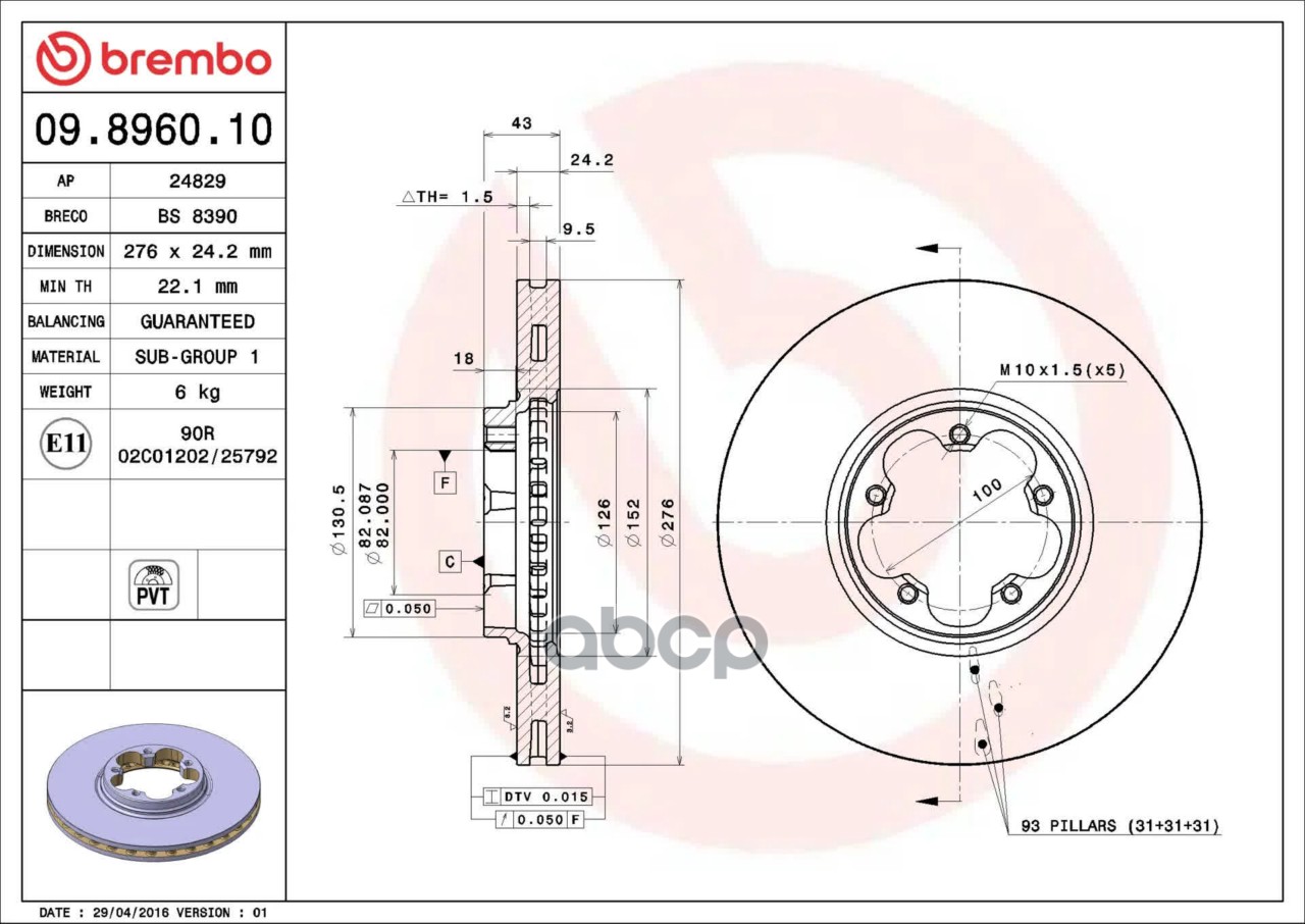 Купить запчасть 09896010 Тормозной диск с доставкой по России.