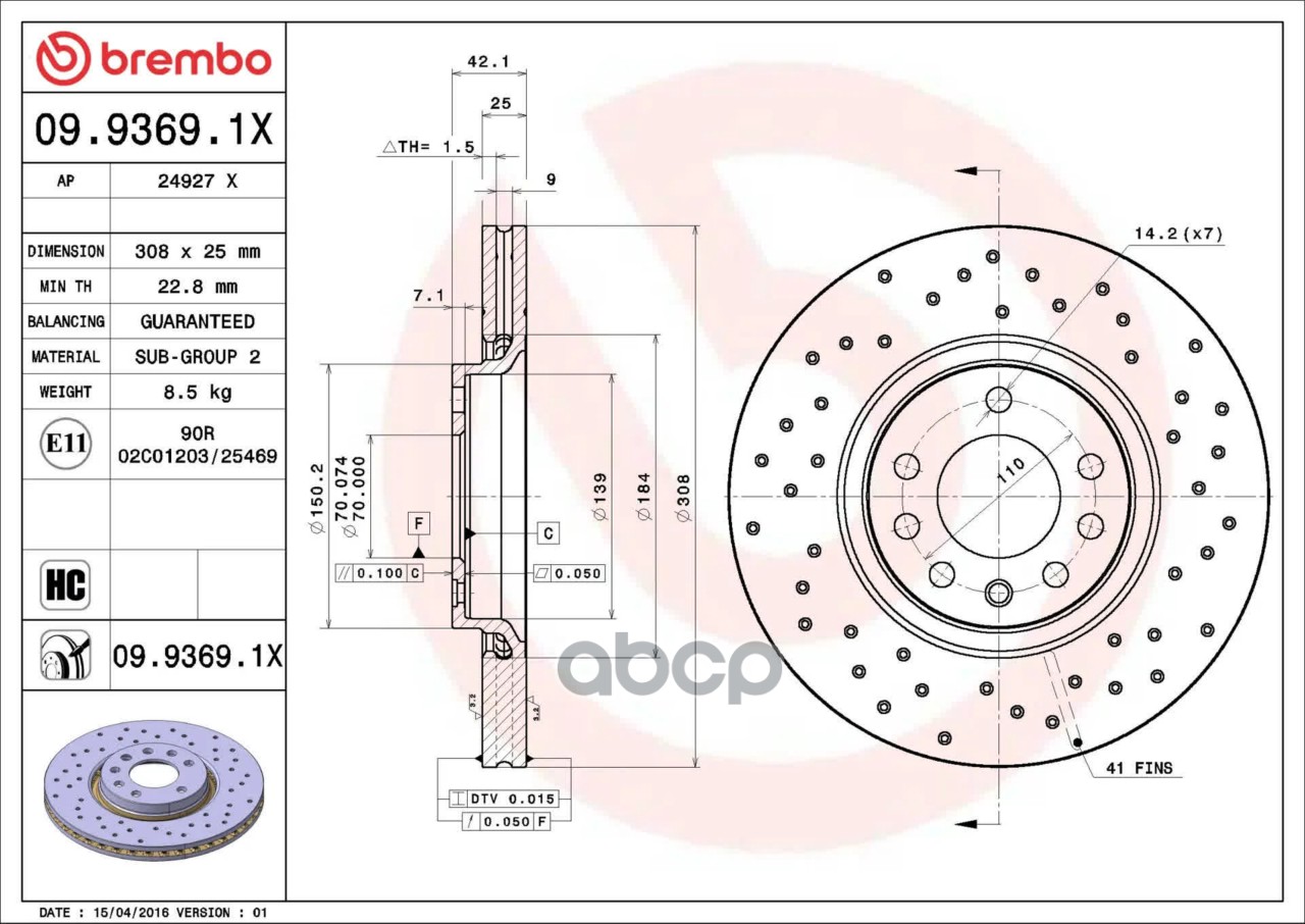 Наименование: 09.9369.1X_ДИСК ТОРМОЗНОЙ ПЕРЕДНИЙ! ПЕРФОРИРОВАННЫ