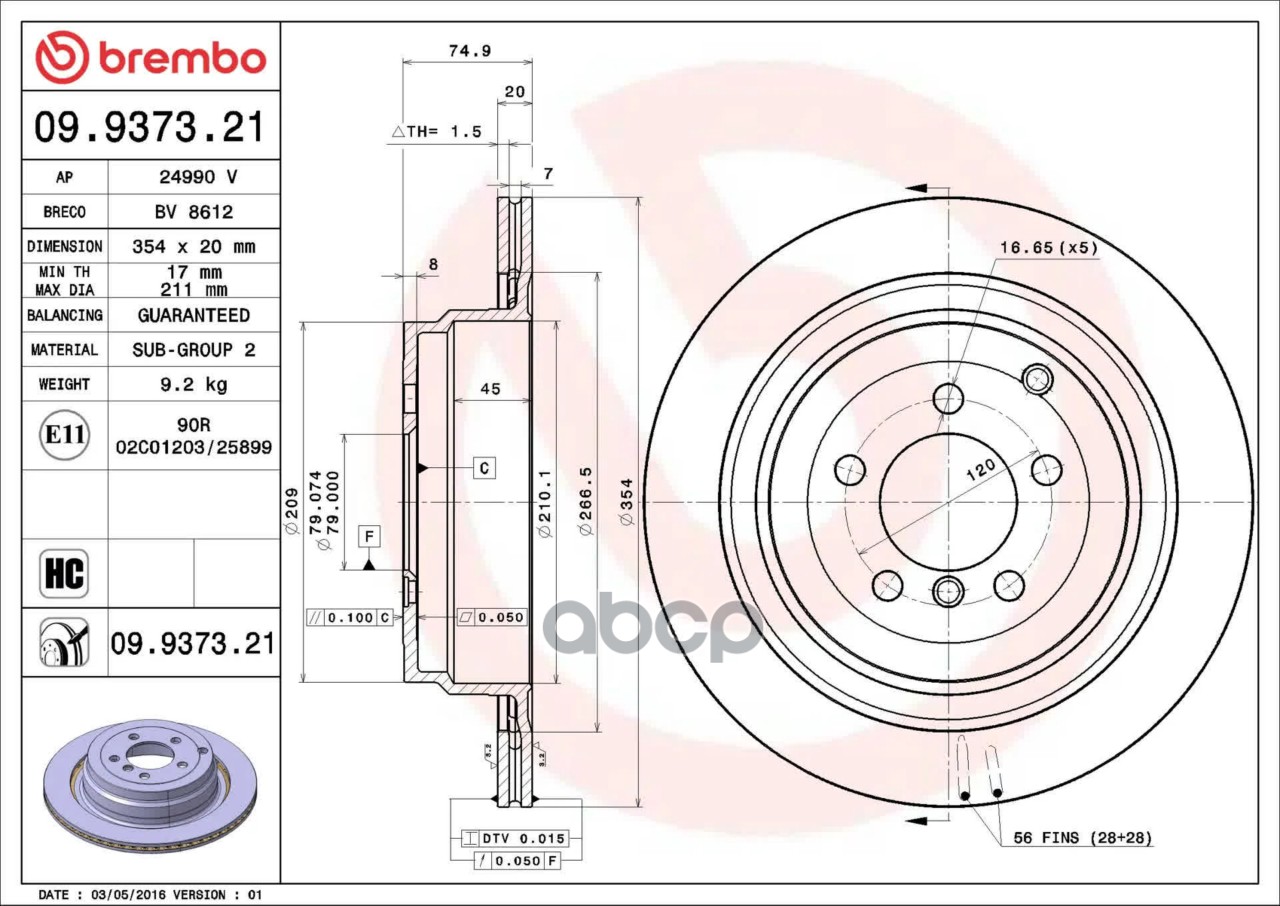 Купить запчасть 09937321 ТОРМ.ДИСК ЗАД.[354X20] 5 ОТВ PAINTED VERSION с доставкой по России.