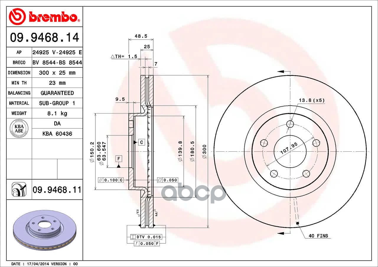 Купить запчасть 09946811 Диск тормозной VOLVO V50 (MW) (04/04-) F / VOLVO S40 II (MS) (01/04-) F / VOLVO с доставкой по России.