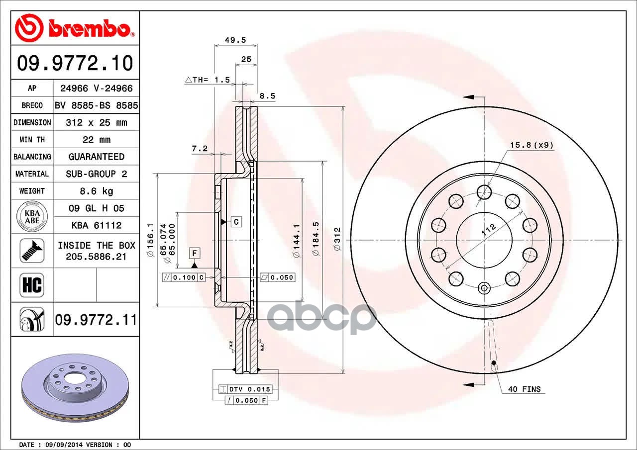 Купить запчасть 09977211 передний тормозной диск с доставкой по России.