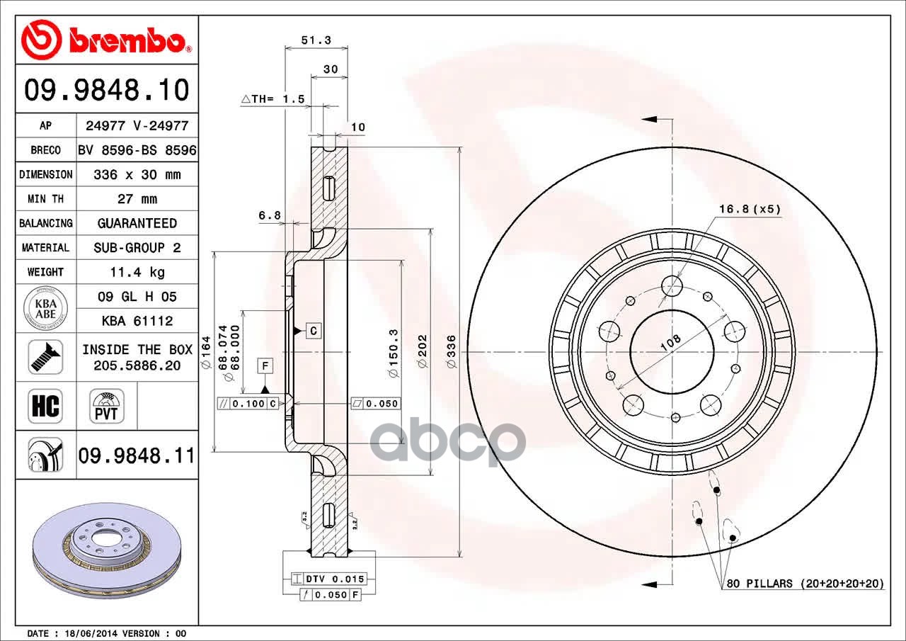 Купить запчасть 09984811 (Аналог 09.9848.10) Диск тормозной с доставкой по России.