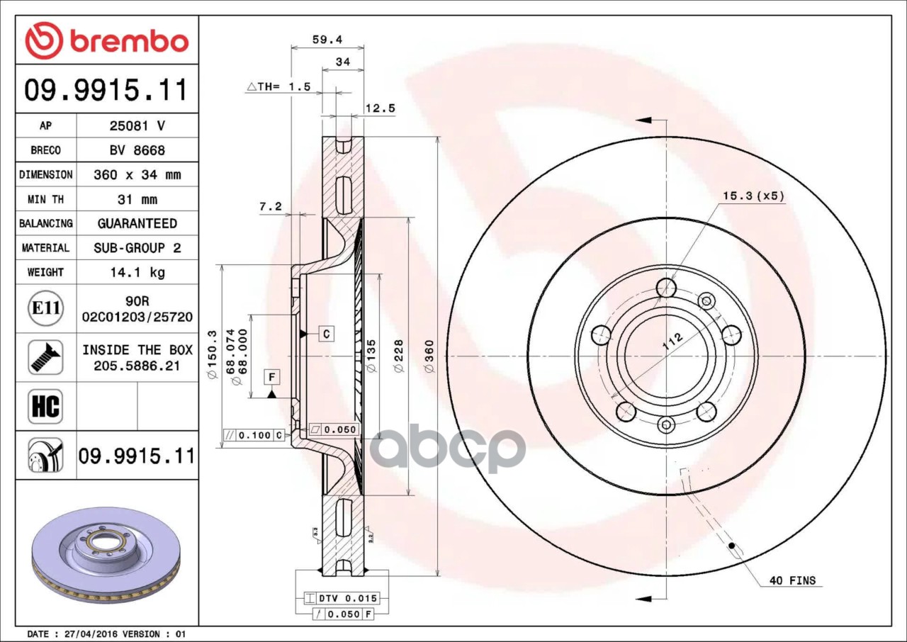 Купить запчасть 09991511 Диск тормозной передн AUDI A8 02-, VW PHAETON 02- с доставкой по России.