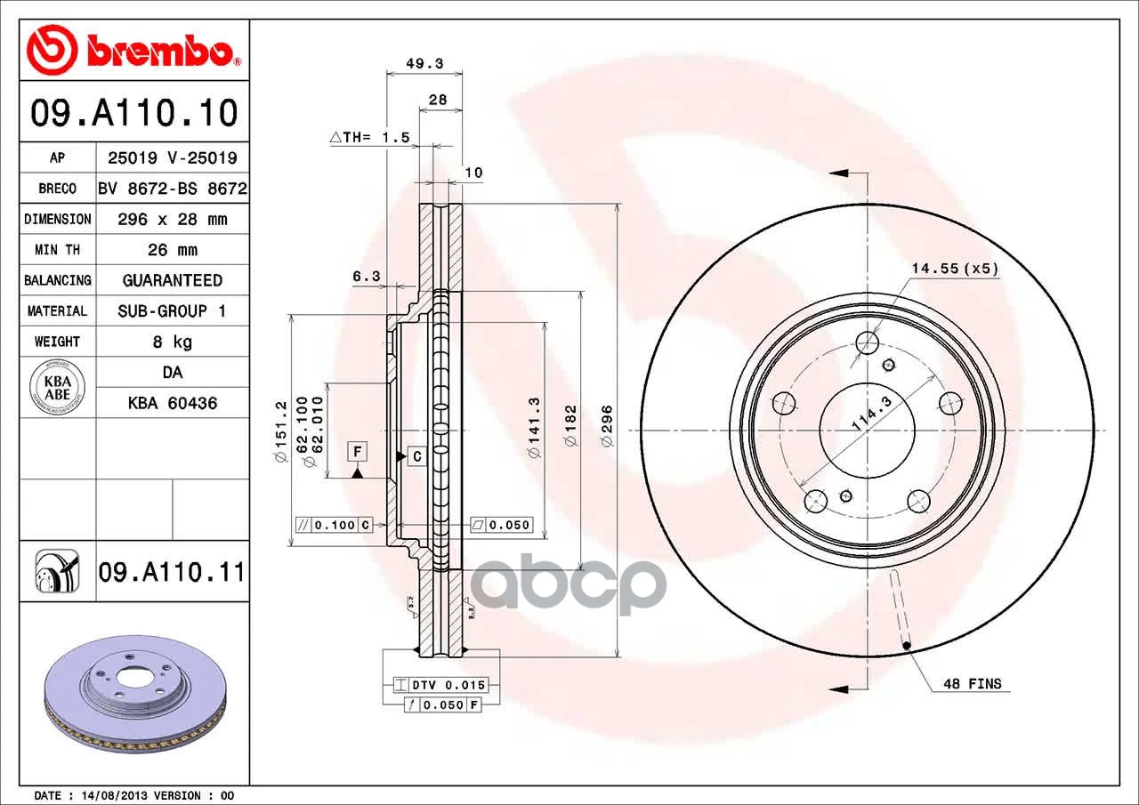 Наименование: 09.A110.11 диск тормозной передний Toyota Camry 2.4/3.0 V6 01>