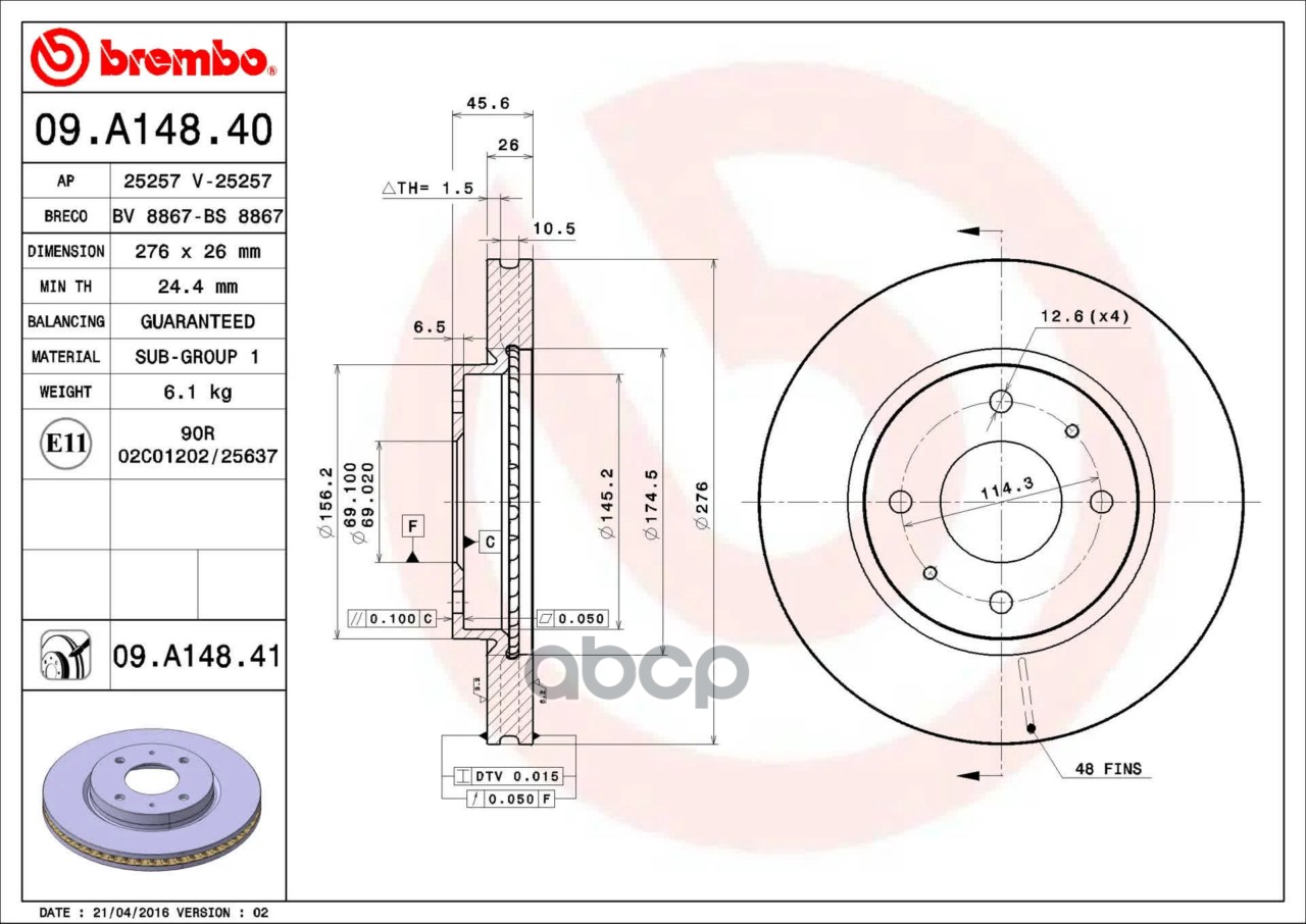 Купить запчасть 09A14841 Диск торм. пер.вент.[276x26] 4 отв. MITSUBISHI Galant VI 2.0/2.5/V6 24V 09/96-10/04/ Lancer 1.3/1.6 09/03-> с доставкой по России.