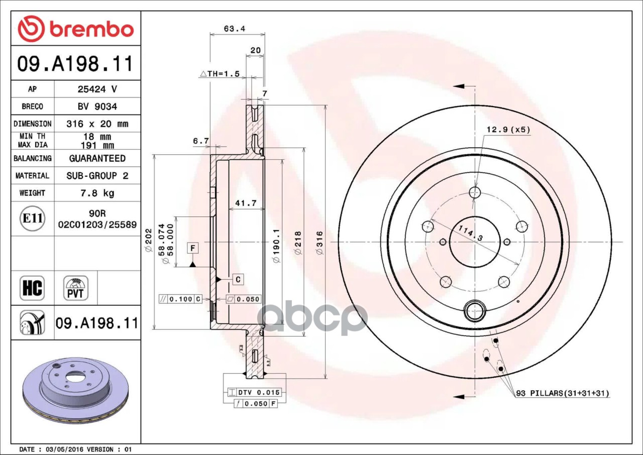 Купить запчасть 09A19811 Диск торм. задн. вент.[316x20] 5 отв. SUBARU Impreza WRX 01-> с доставкой по России.