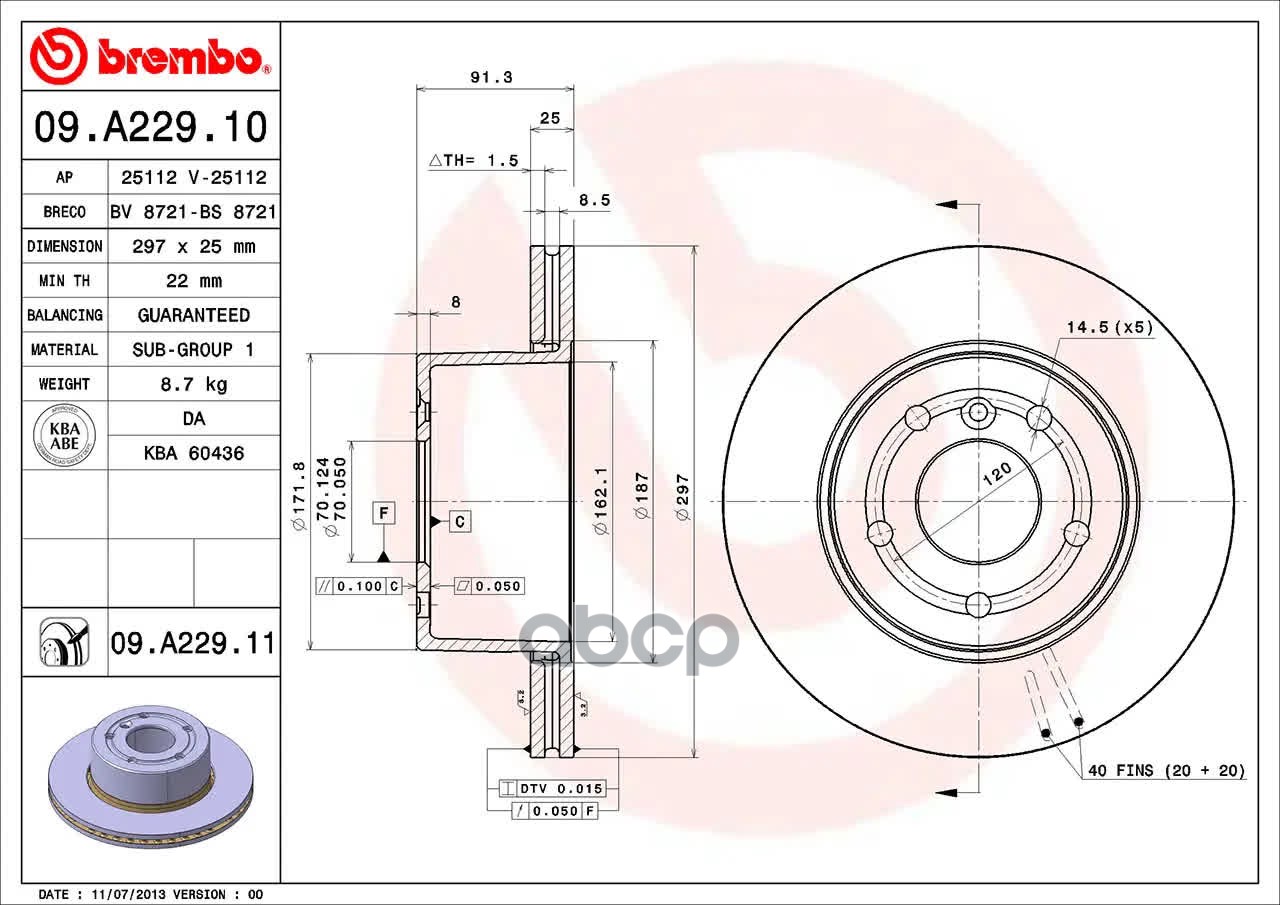 Купить запчасть 09A22911 Диск торм. пер. вент.[297x25] 5 отв. LAND ROVER Discovery II 98-04 с доставкой по России.