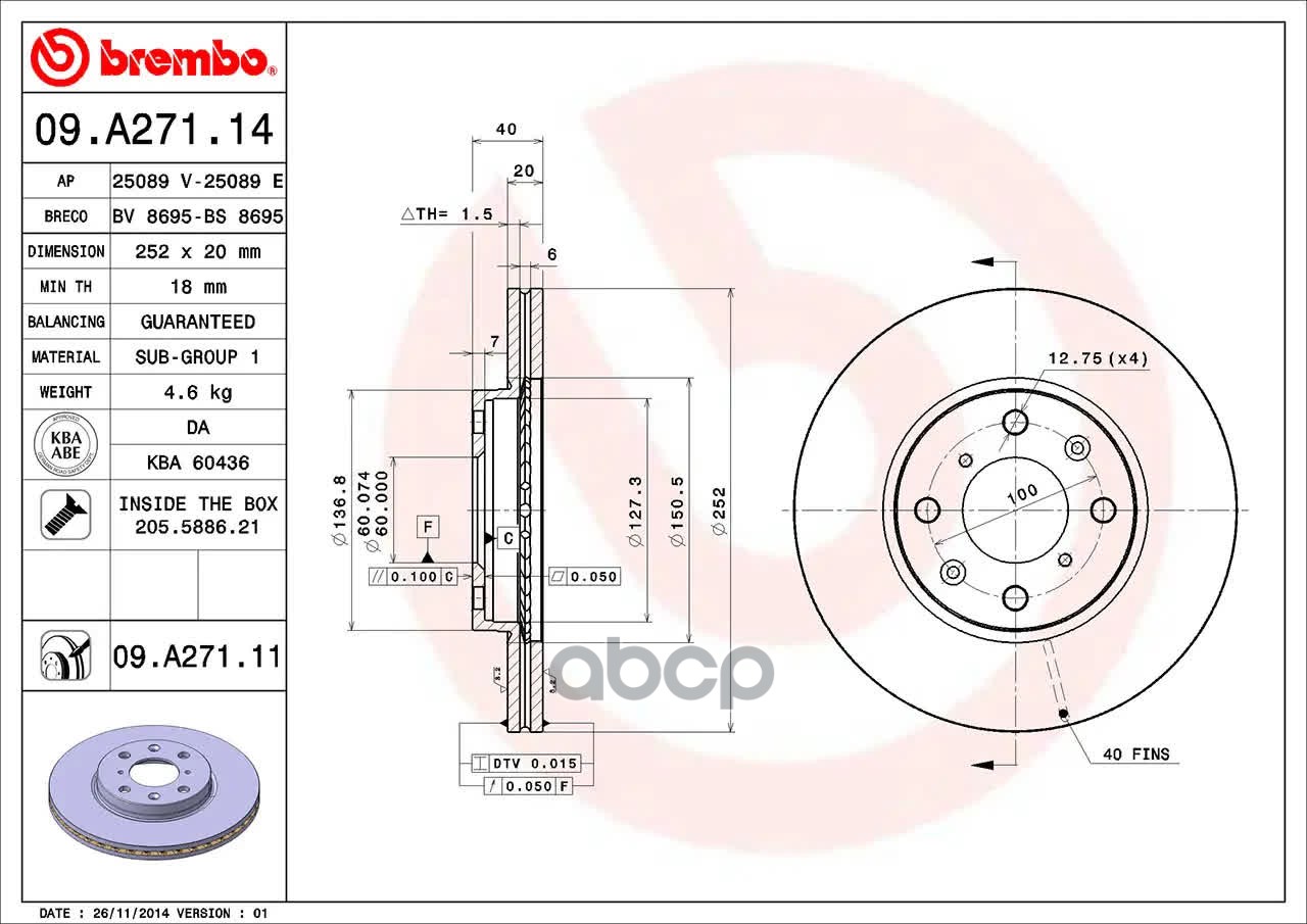 Купить запчасть 09A27111 Тормозной диск с доставкой по России.