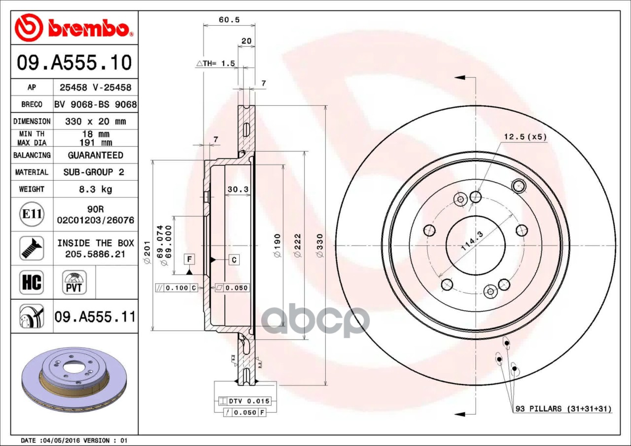Купить запчасть 09A55511 Тормозной диск окрашенный с доставкой по России.