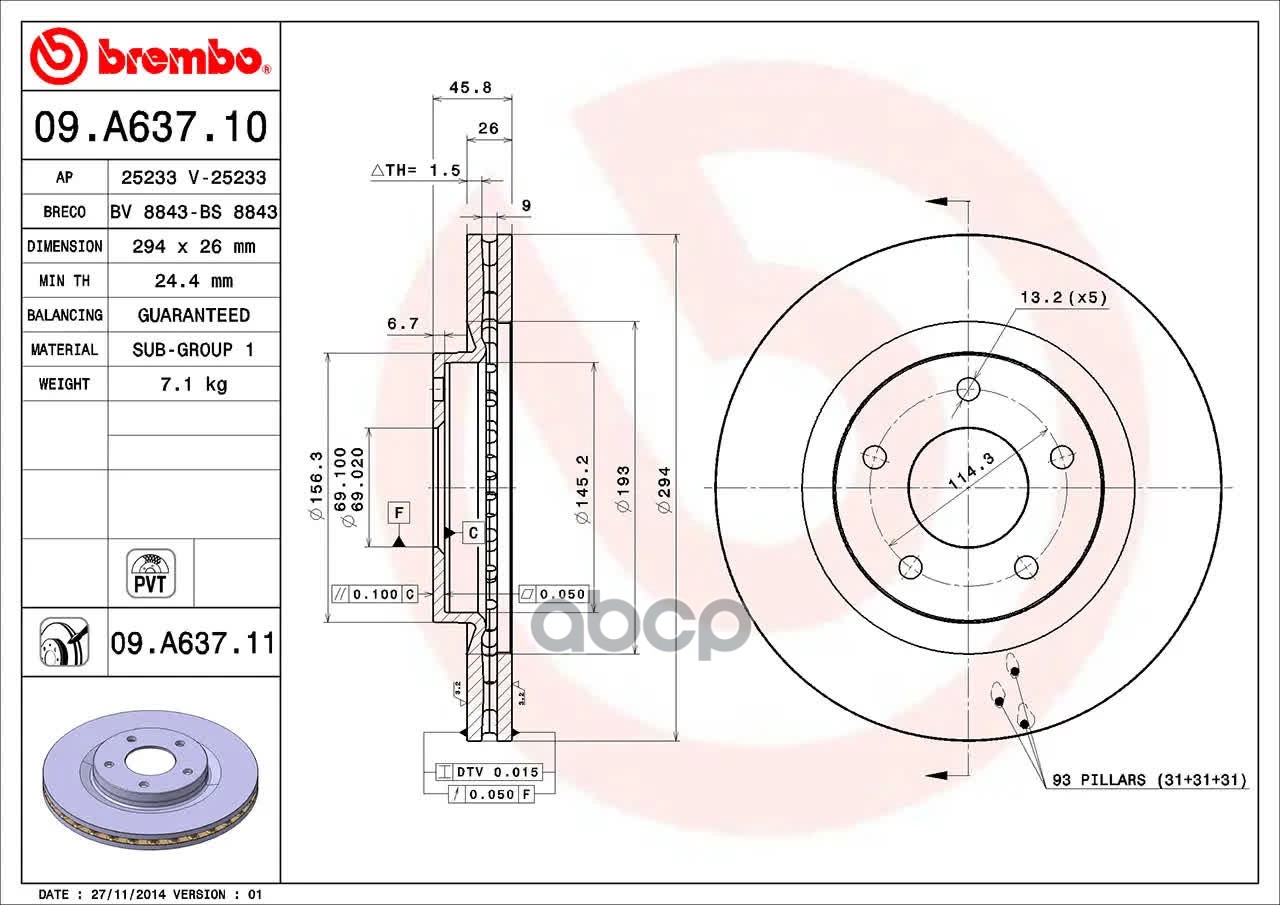 Наименование: 09.A637.11_ДИСК ТОРМ.ПЕР!С ПОК. CHRYSLER SEBRINGA