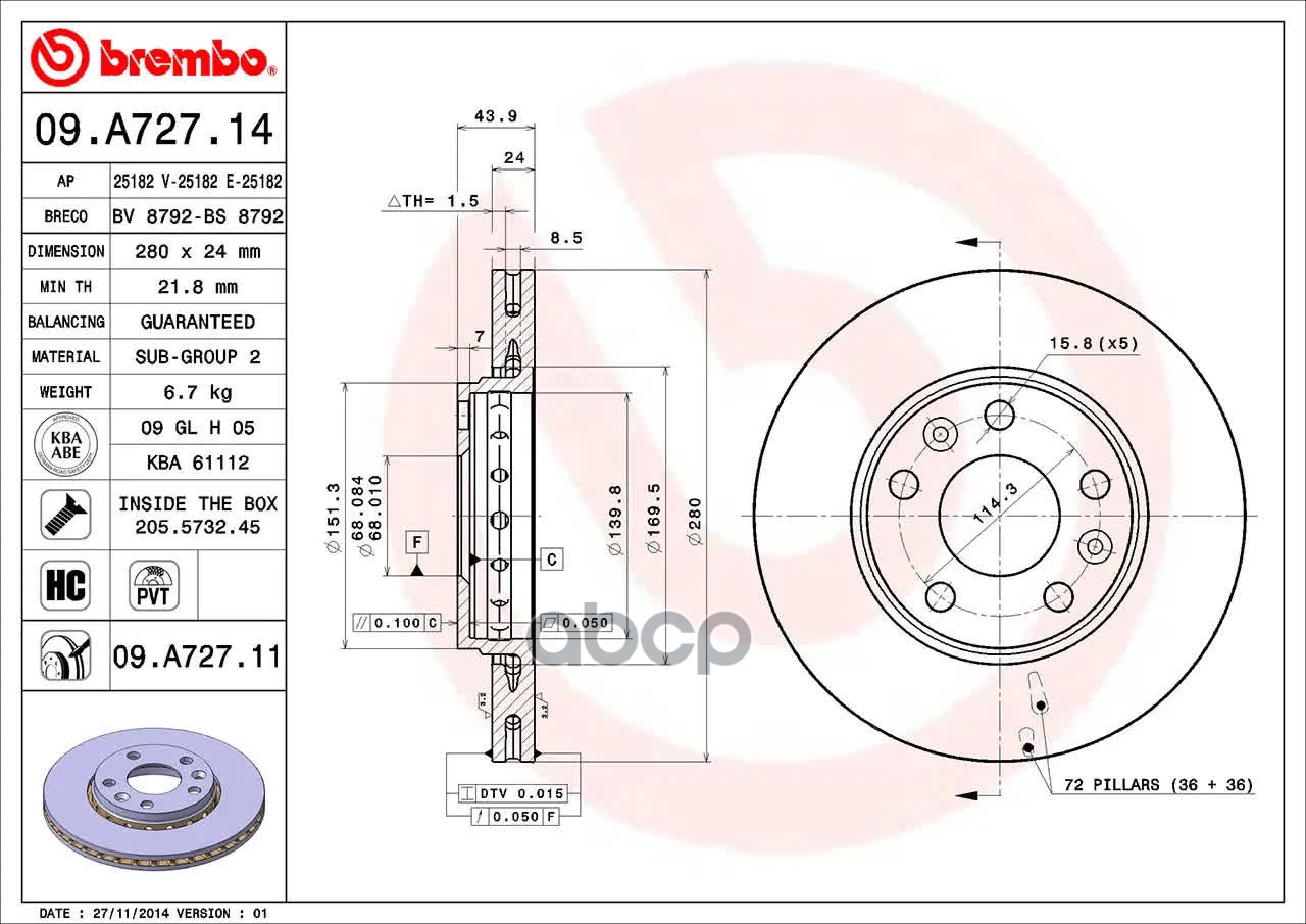 Купить запчасть 09A72711 Диск тормозной с доставкой по России.