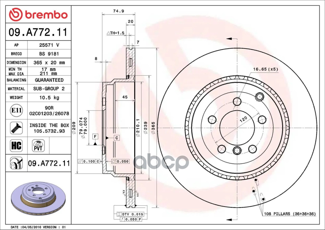 Купить запчасть 09A77211 Диск тормозной задн LAND ROVER RANGE ROVER III 09-12 с доставкой по России.