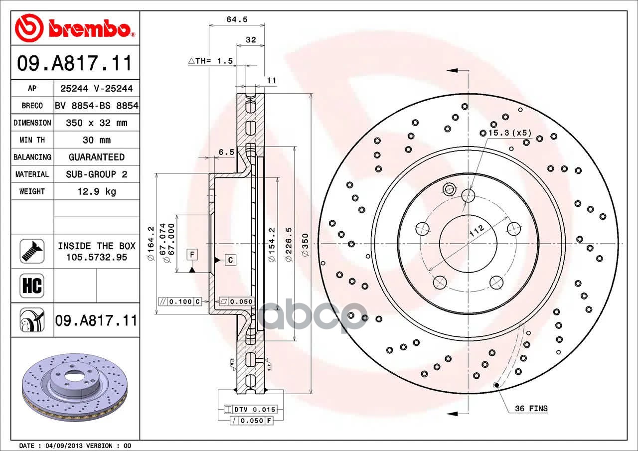 Купить запчасть 09A81711 Диск тормозной передн, MERCEDES-BENZ E-CLASS E 420 CDI/E 500 02-08, E-CLASS T-M с доставкой по России.
