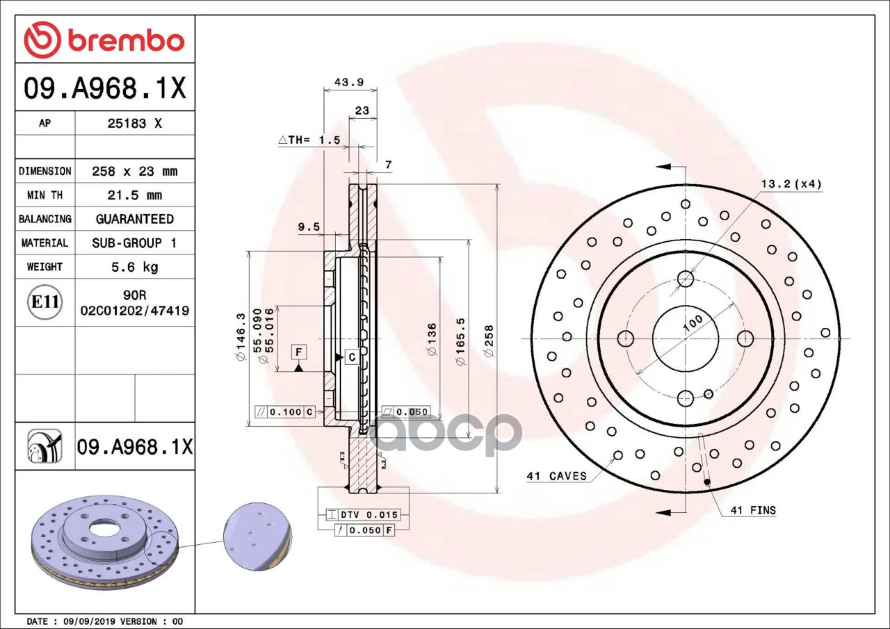 Купить запчасть 09A9681X Диск тормозной перфорированный с доставкой по России.