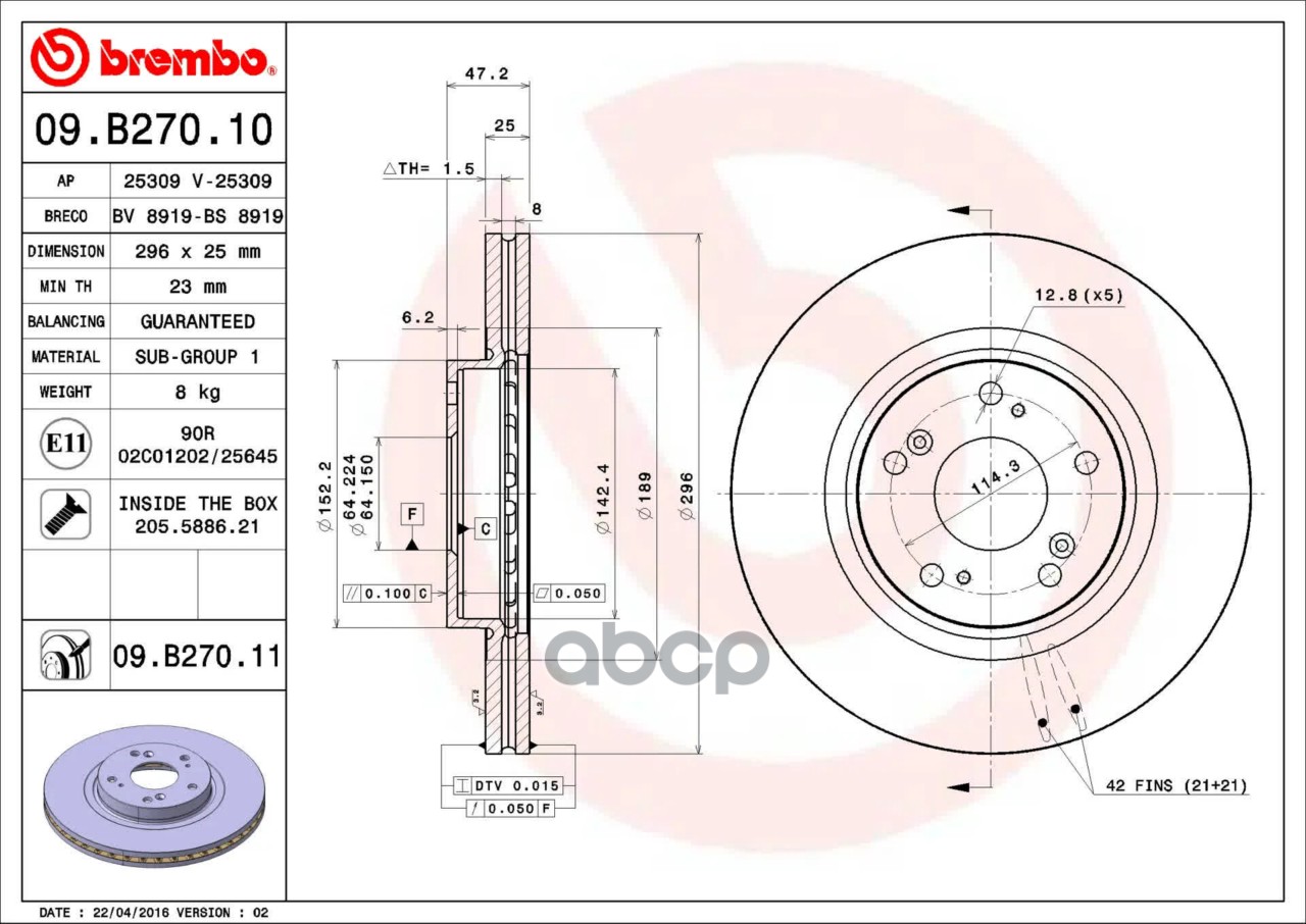 Купить запчасть 09B27011 Тормозной диск окрашенный с доставкой по России.