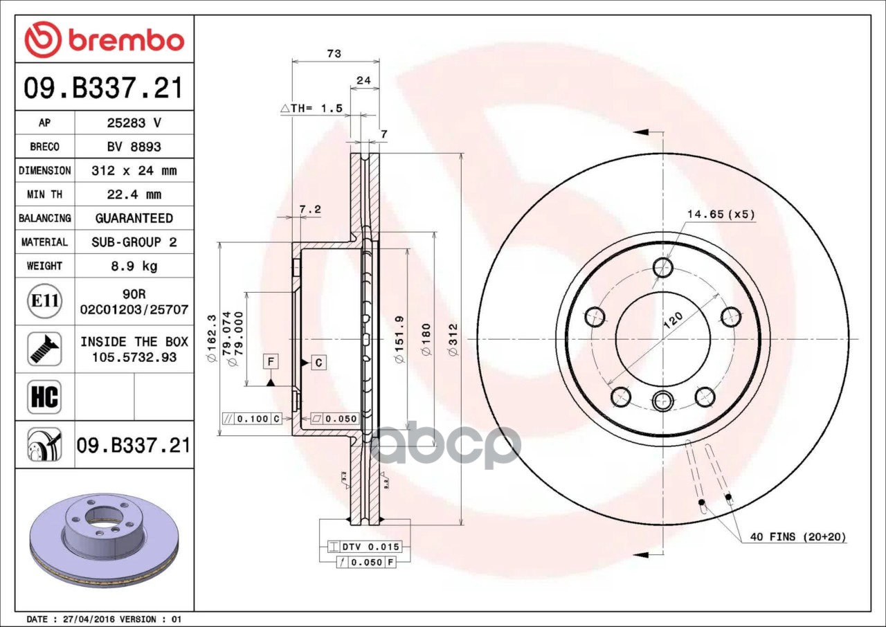 Купить запчасть 09B33721 Диск тормозной передний вентилируемый BMW (E90, F20, F21, F22, F30, F80, E84, F с доставкой по России.