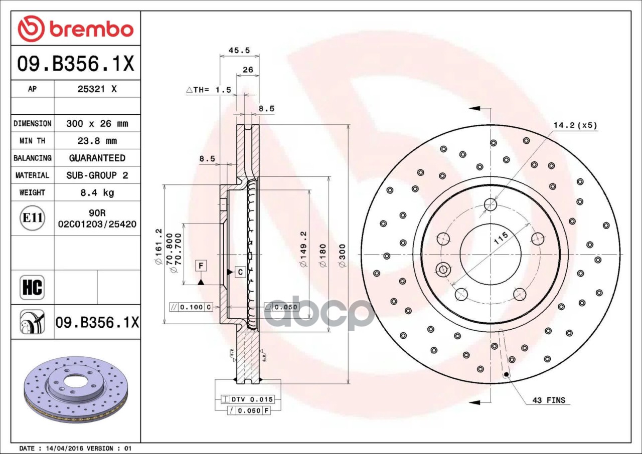 Купить запчасть 09B3561X ДИСК ТОРМОЗНОЙ ПЕРФОРИРОВАННЫЙ с доставкой по России.