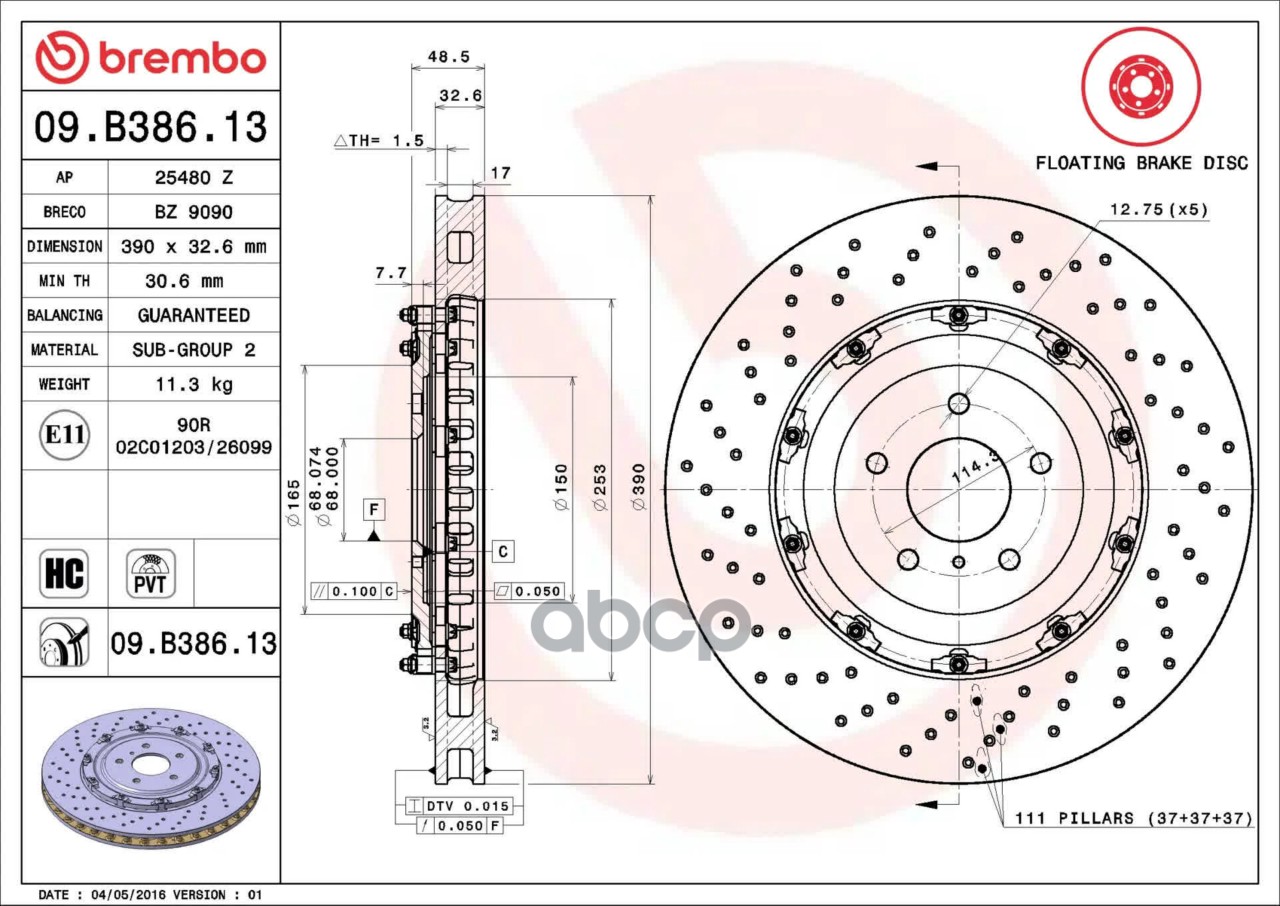 Диск торм. пер.[390x32,6] 5 отв. NISSAN GT-R 3.8 09->