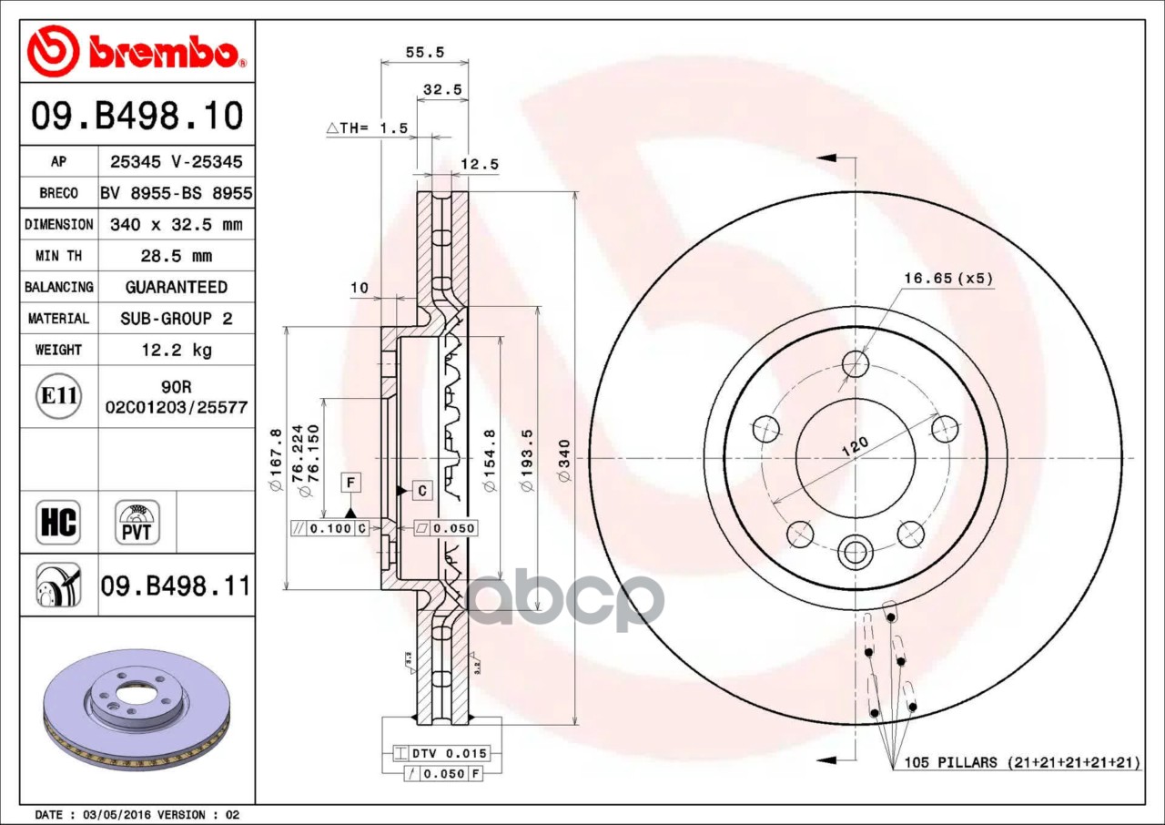 Купить запчасть 09B49811 Диск тормозной VAG MULTIVAN/T5/T6 -15/15- передн.340мм.PVT с доставкой по России.