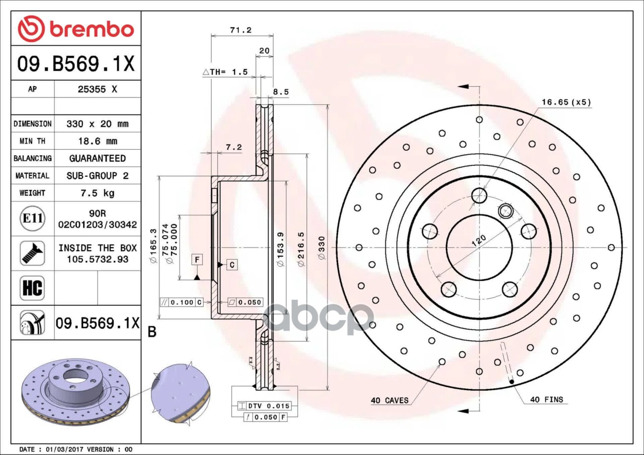 Купить запчасть 09B5691X Диск тормозной BREMBO с доставкой по России.