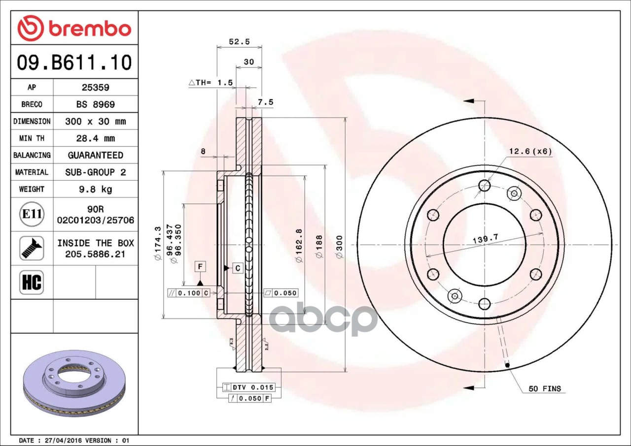 Купить запчасть 09B61110 Тормозные диски с доставкой по России.