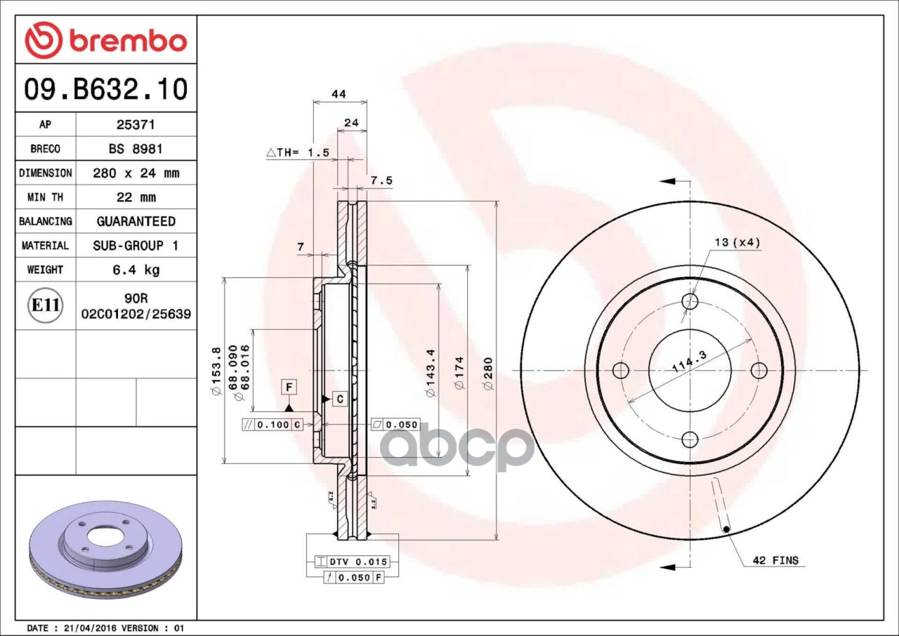 Купить запчасть 09B63210 Диск торм. пер.[280x24] 4 отв. NISSAN Cube/Tiida 1.5-1.8 07-> с доставкой по России.