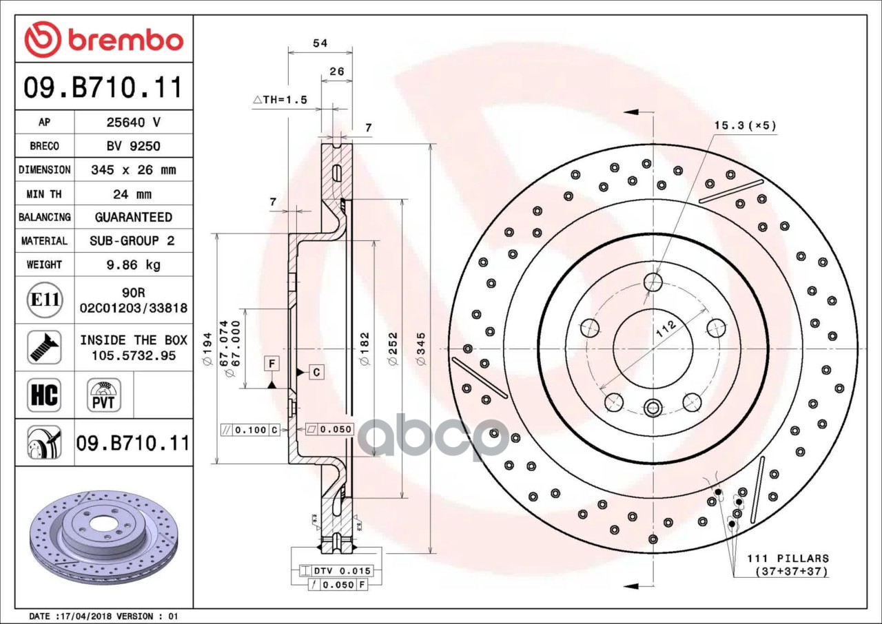 Купить запчасть 09B71011 Тормозной диск окрашенный с доставкой по России.